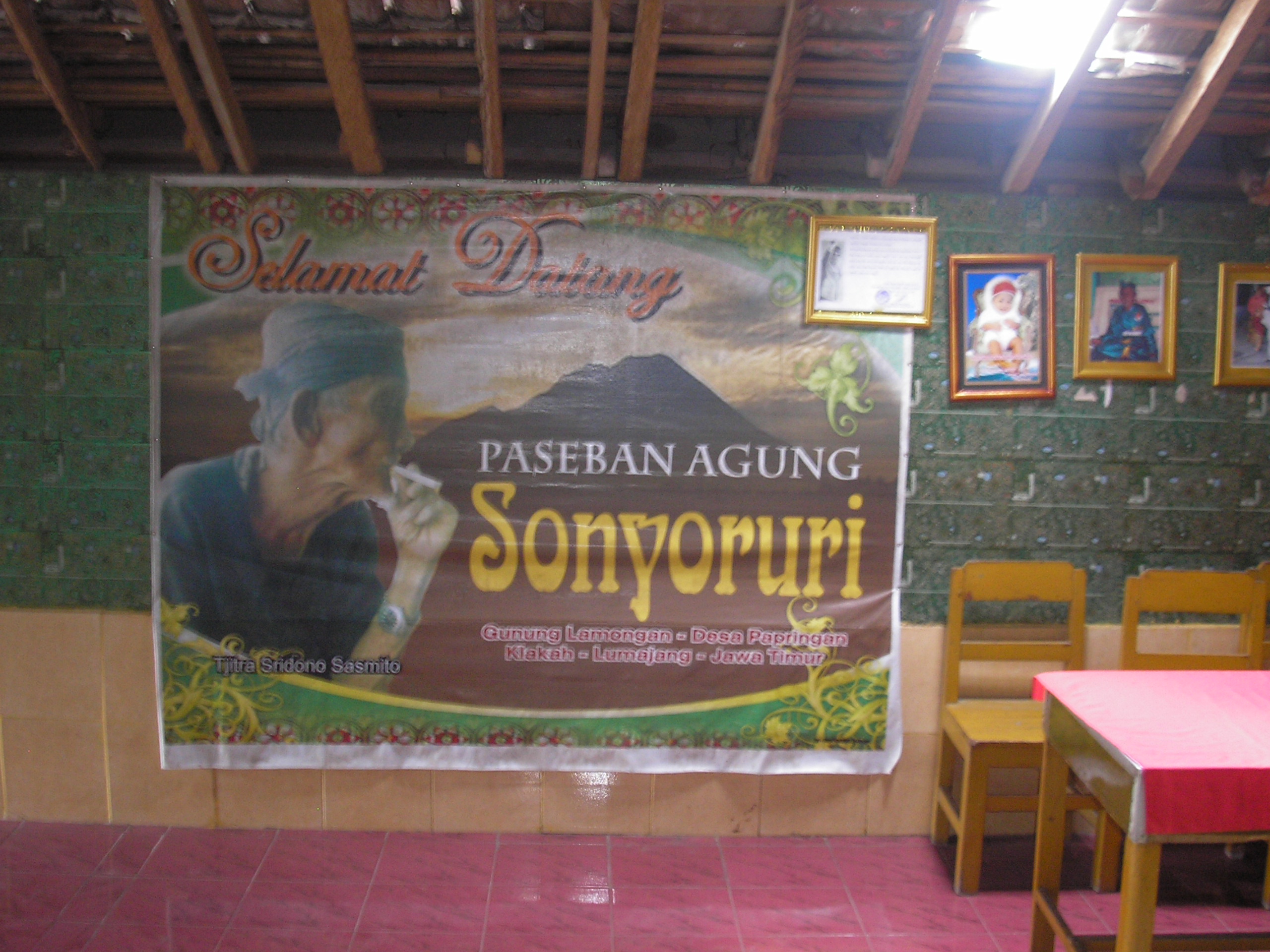Mbah Citro is an affable gent who claims to be 108 years old and built his house here in 1964 after moving from Semarang. He and his extended family are happy for people to rest here and they will prepare basic meals for you if required. The house itself is very eccentric indeed – it has been entirely ‘wallpapered’ in electronic circuit boards – thousands of them! There are also various photos and posters of Mbah Citro in formal dress and quotations from former president Sukarno. There are many date stones set into or written on the walls of the house, indeed a new one was going up the day we arrived to commemorate Mbah Citro’s 46th year of residence here! It is very useful to have a local guide because most people here speak Javanese much moreso than Bahasa Indonesia, never mind English. This area is one of great importance to traditional and local religious beliefs.