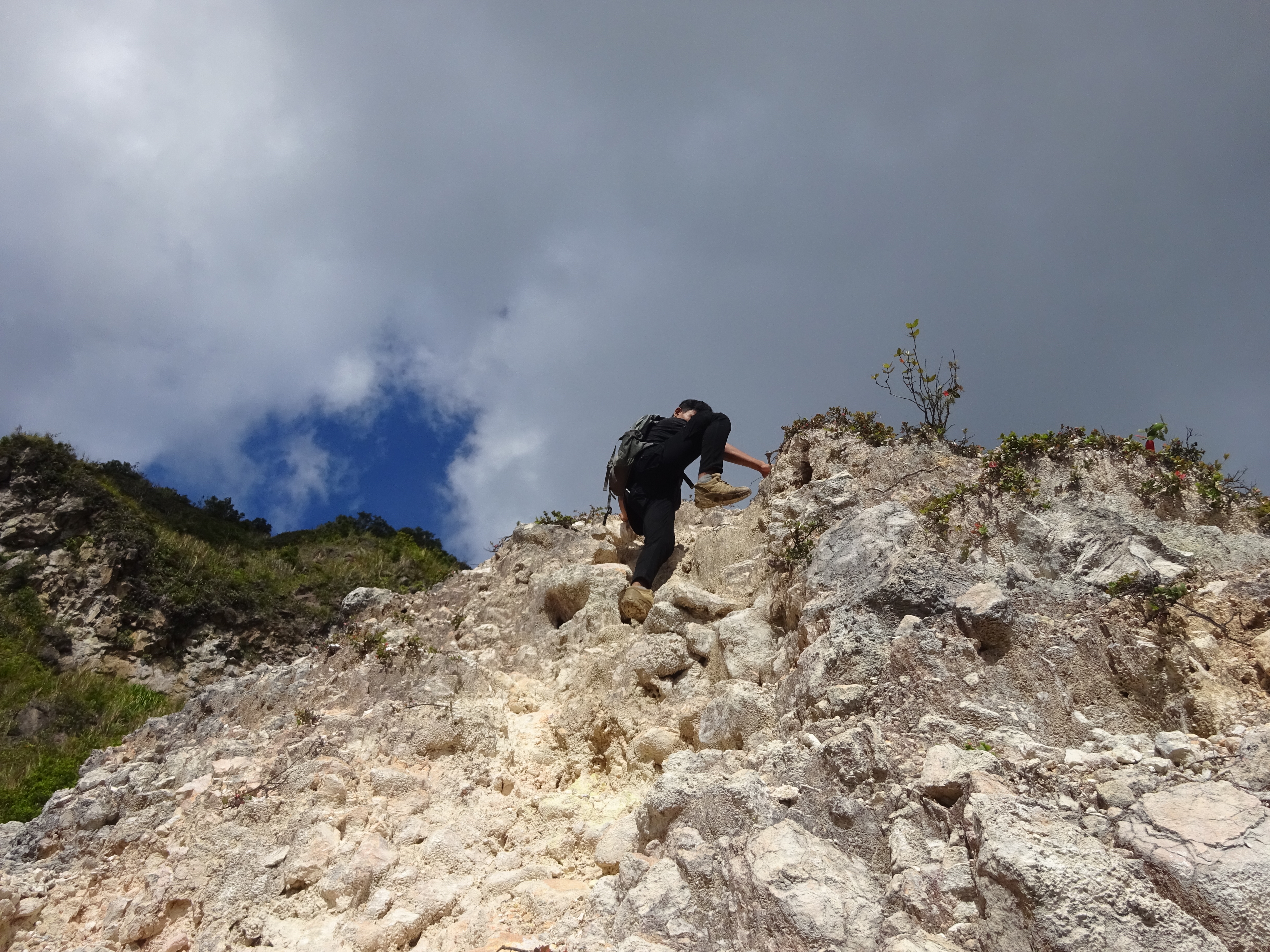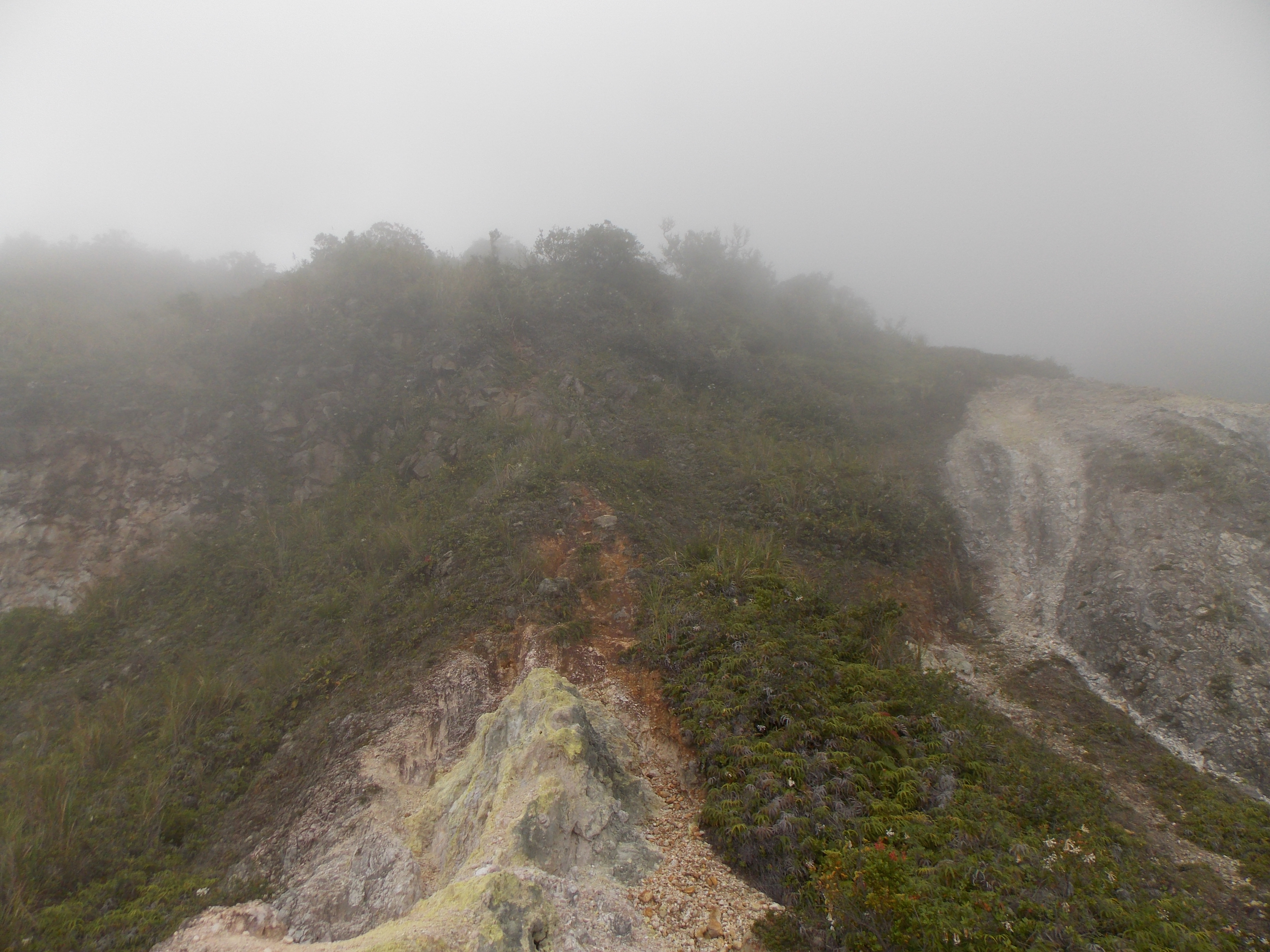 It looks steep, but there is a well-worn trail up the cliff walls, and with care this can be done safely. There is a small rope at the steepest section (1,579m). The views get better and better as you get higher, and there are even some pitcher plants in this area. It is certainly an excellent panorama of the entire crater area. Back down near where the camping spot is you should be able to make out a weird mini-crater with a muddy cone but apparently this currently cannot be accessed without the use of a machete.