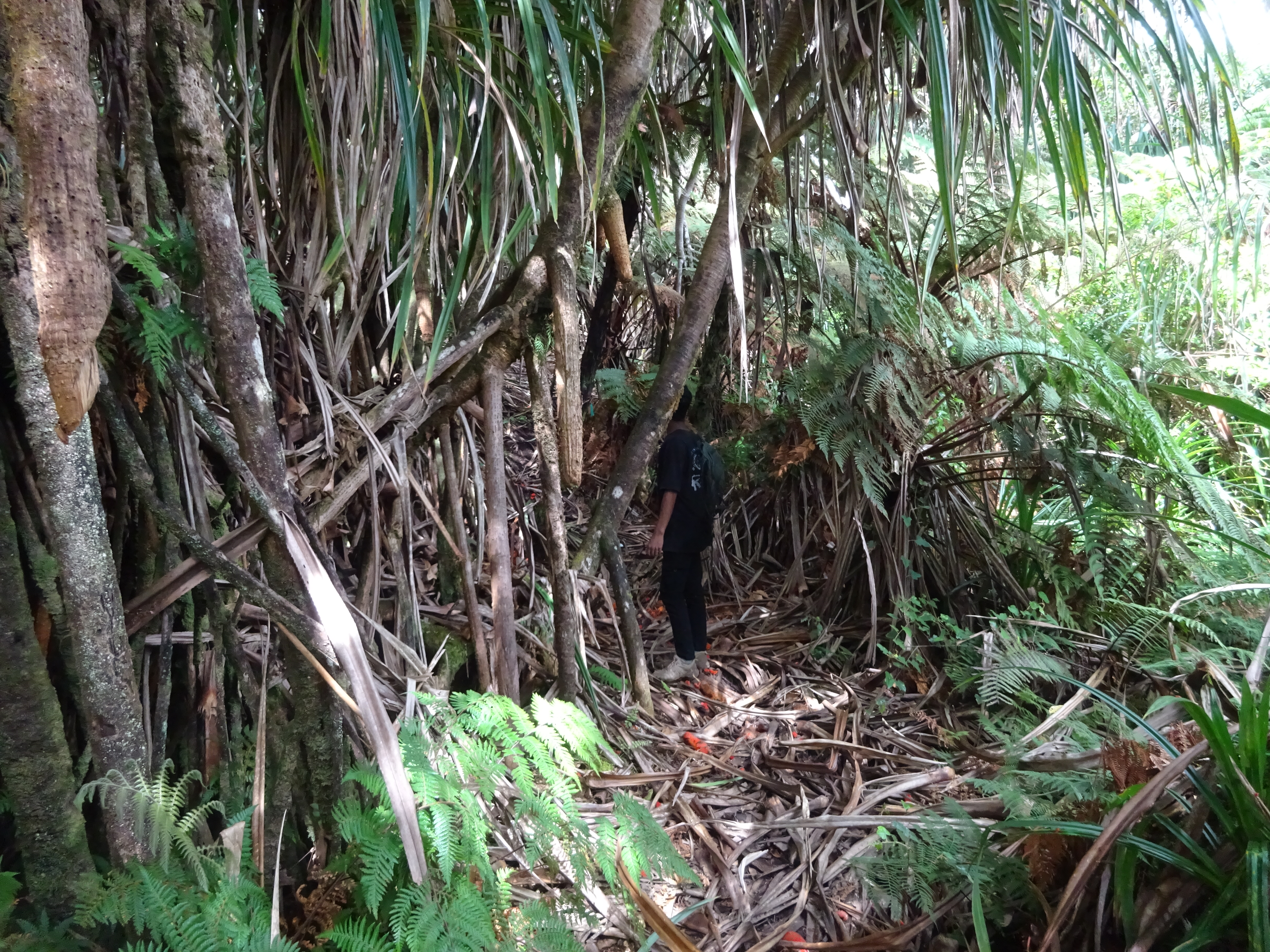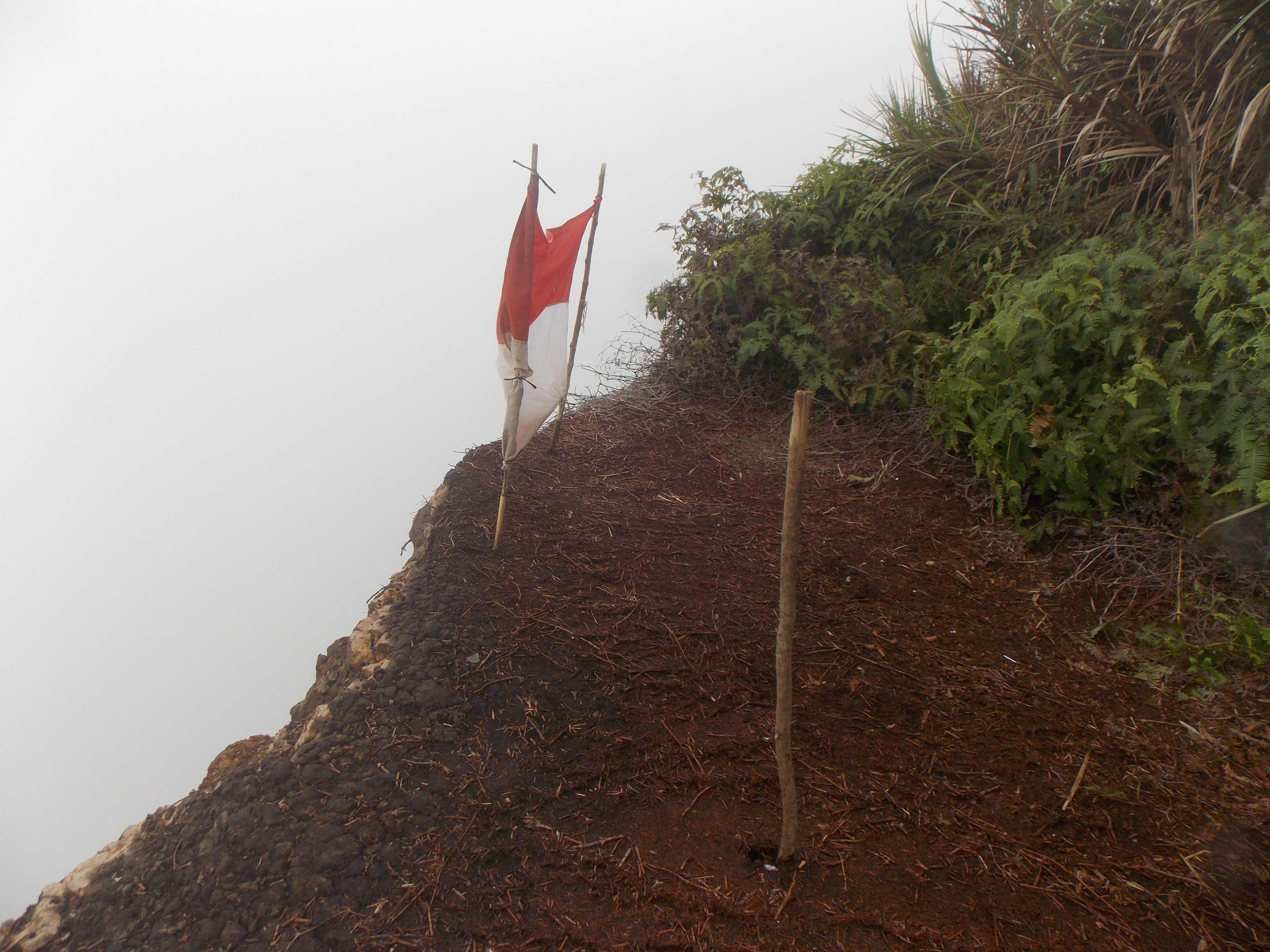 Hiked Ambang for a second time last week, and made it up to the top of the steep crater cliffs with the help of a couple of local village boys. Sadly there was rain and very low cloud meaning trying to find a way through the dense vegetation to the highest point was near impossible. I looked around at other potential routes up from path junctions on the lower sections of the trail but none seemed especially likely. Needs good weather and a full day of exploring I think – but probably possible with a bit of effort, good luck and sufficient time.