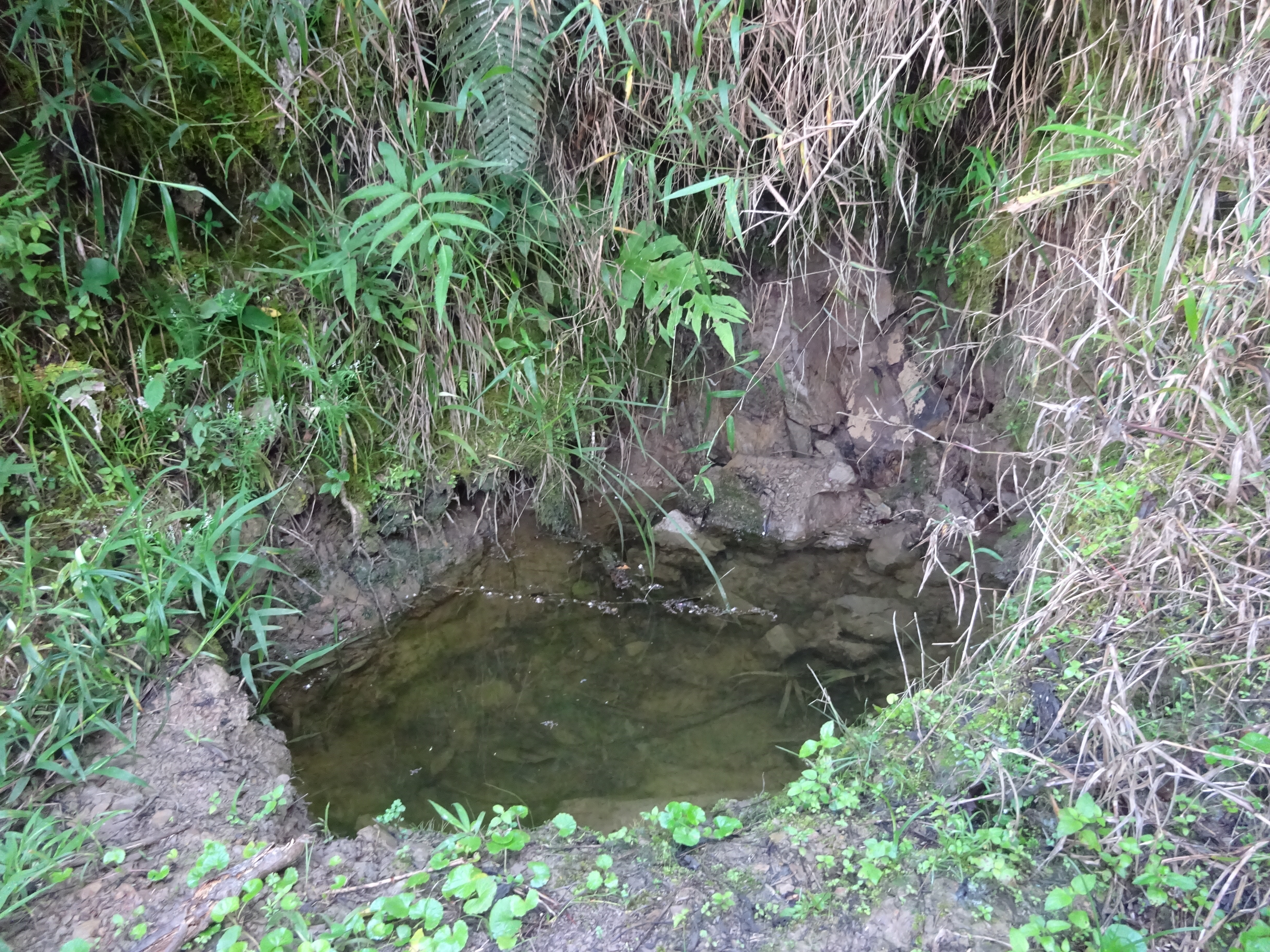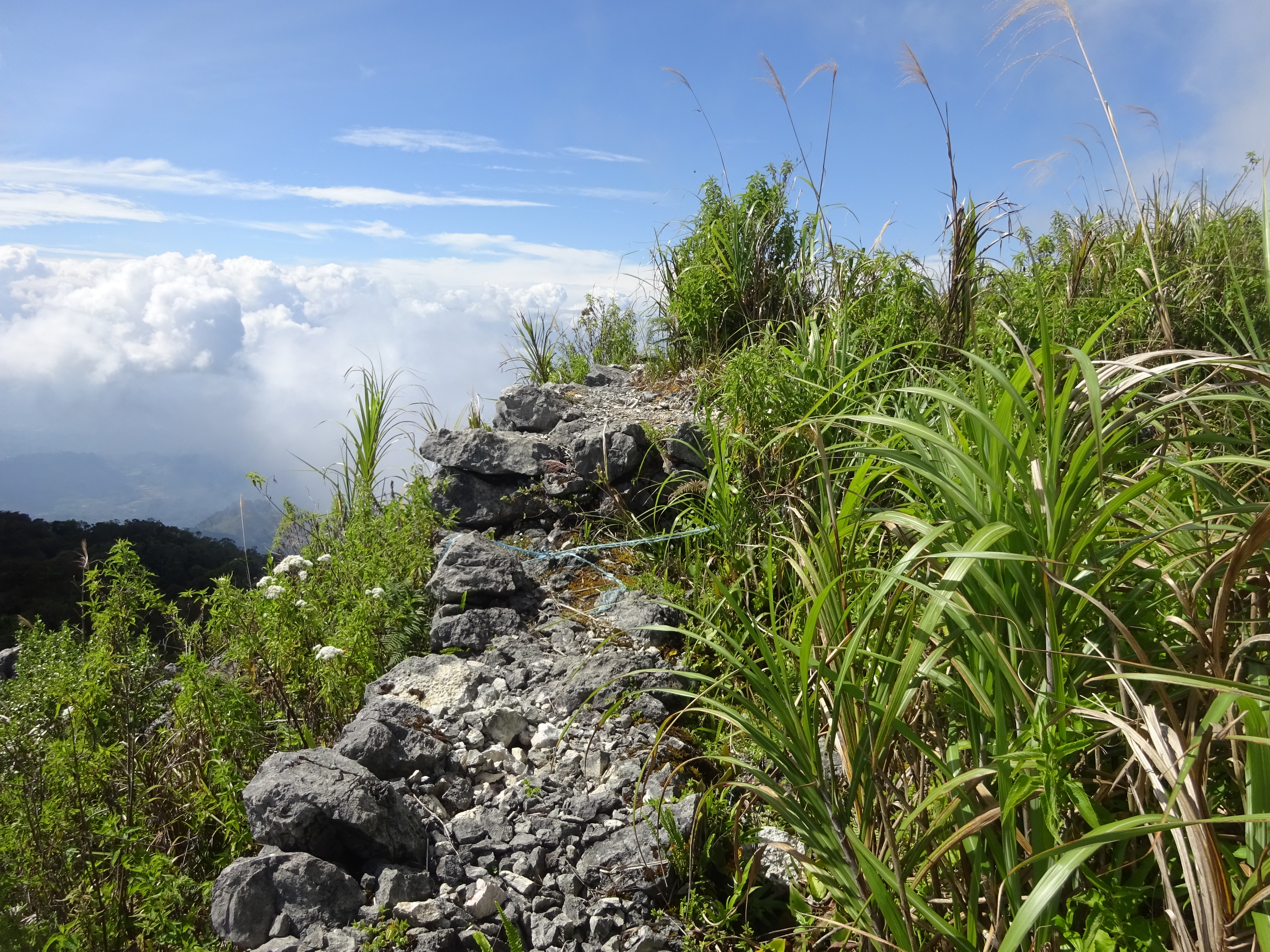 In this area, high up the mountainside, you are likely to encounter farmers and their buffalo, and there is a small wooden shelter (1,790m) where food for cattle is often left. Just beyond here the trail crosses a very small stream (1,800m) before reaching a junction where there are two tiny caves beneath overhanging boulder (1,810m). Take a left here and in just a moment you will be at a large flat area where local hikers camp at weekends. There is also a new wooden shelter.