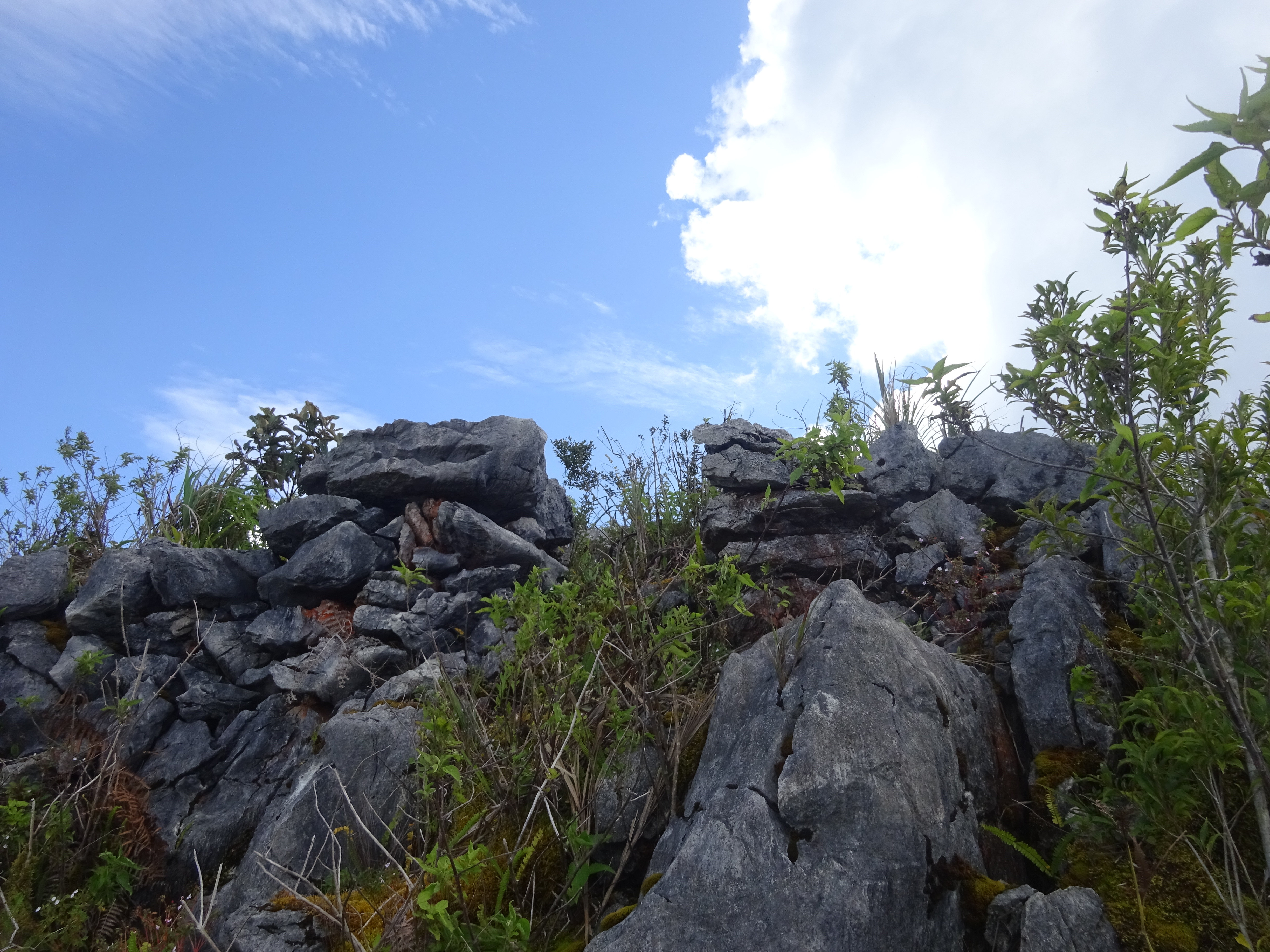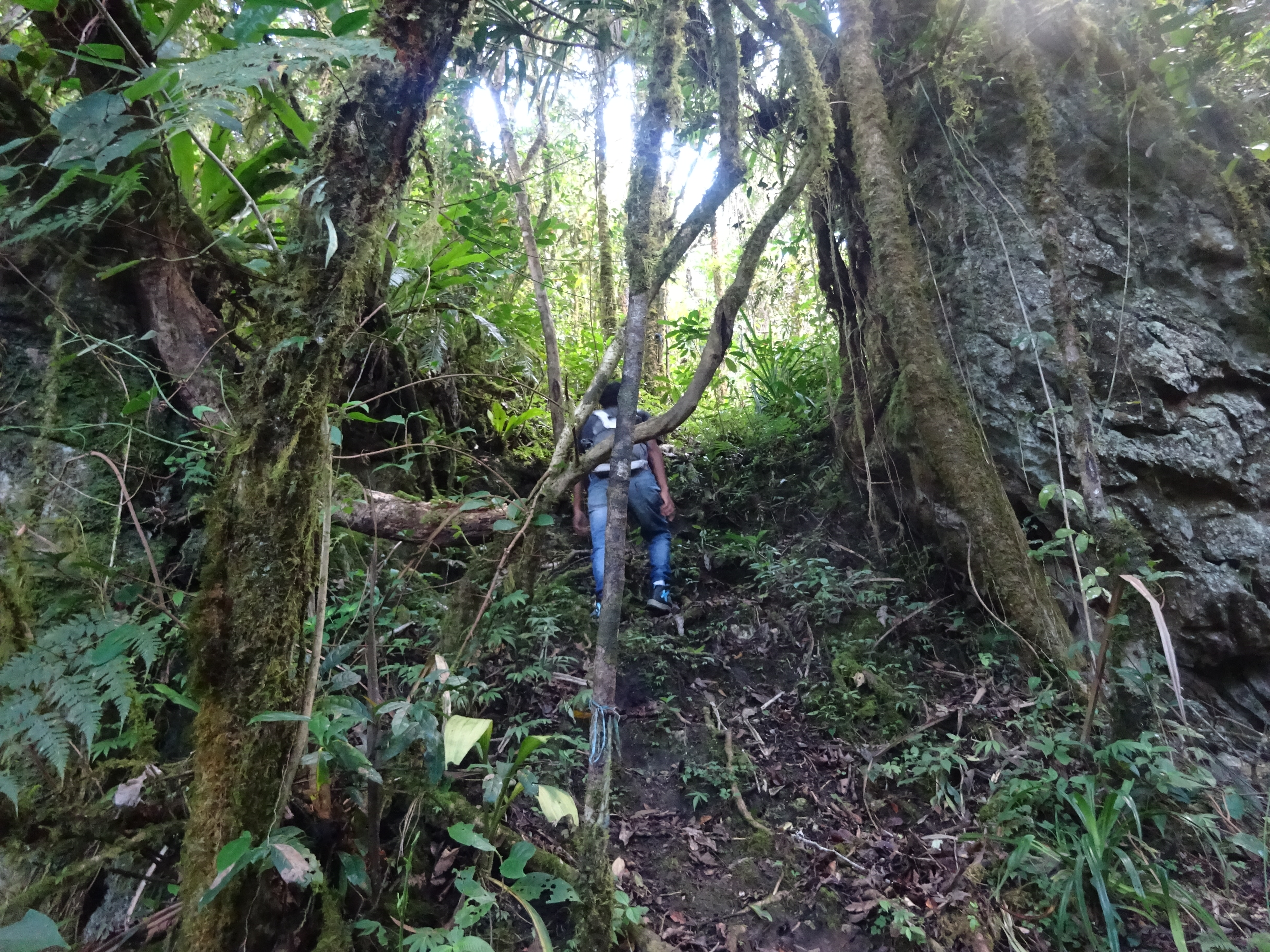 Beyond Pos 3, the terrain gets rockier with large boulders (1,813m) and then a very short rope section (1,848m) on a steep section of trail, which marks the end of the forest and the start of truly stunning scenery as you near the top. Do take real care, as there are some deep holes and crevasses which are not always easy to see between the rocks and vegetation.