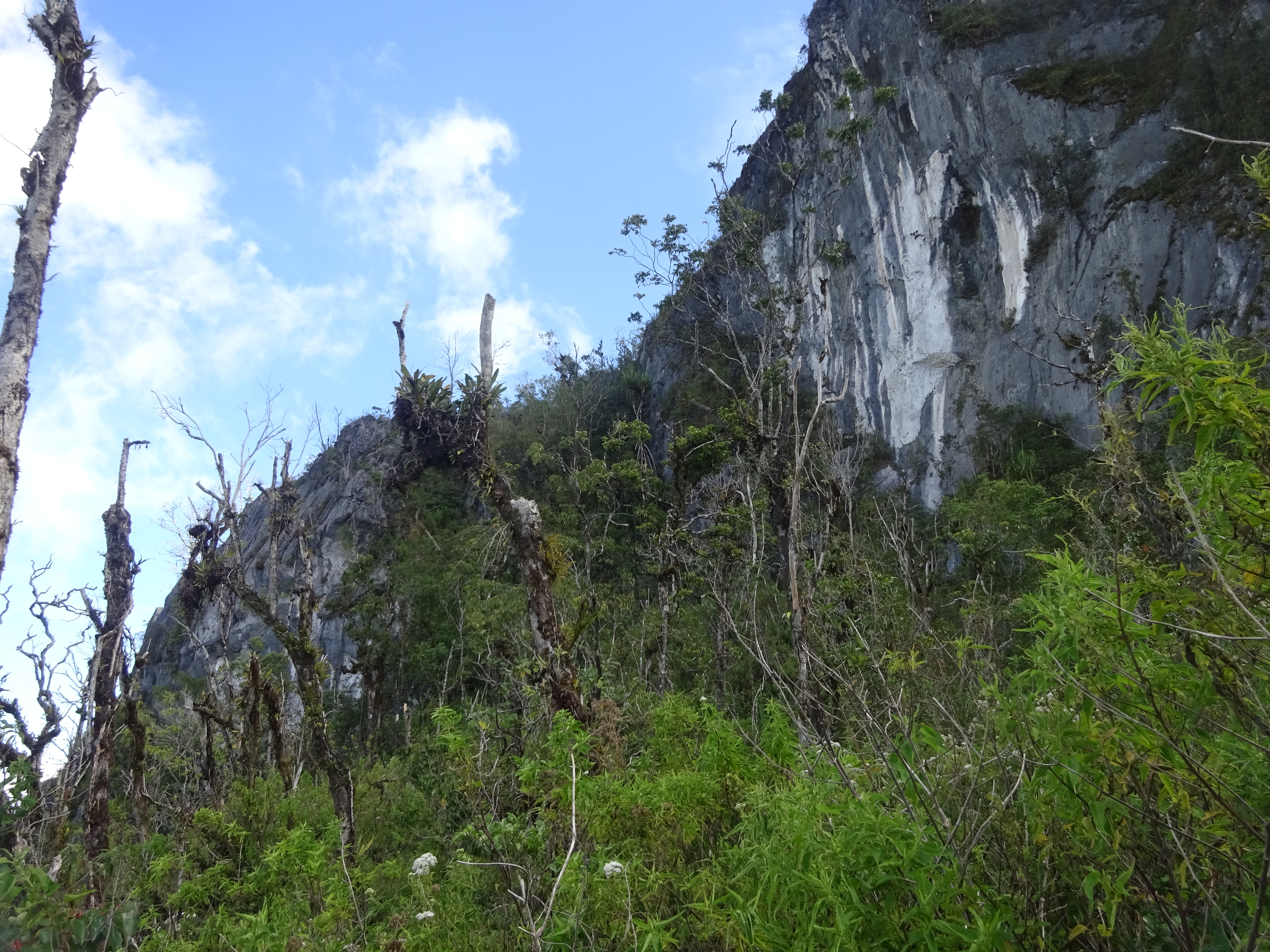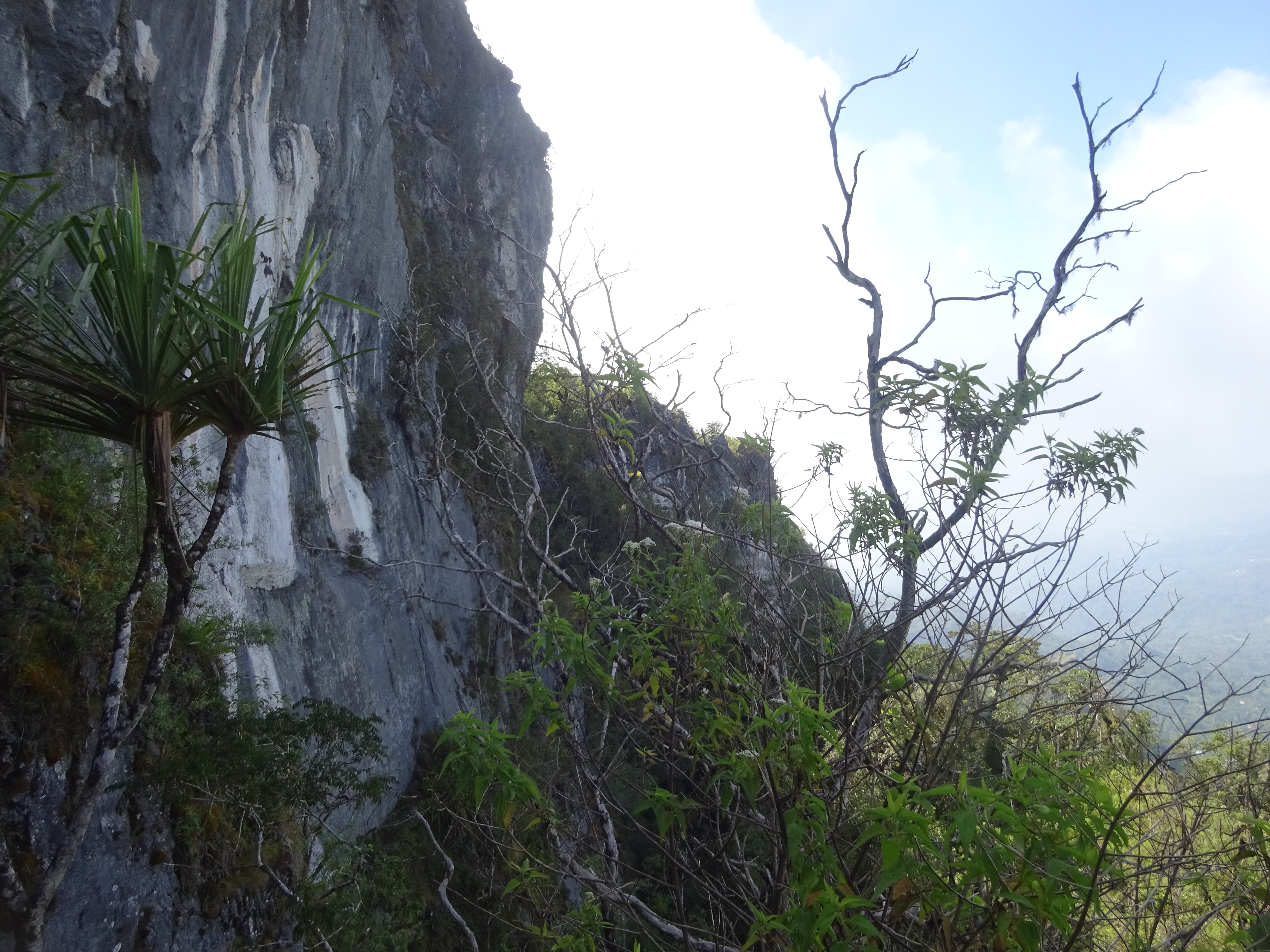 The vertical summit cliffs to the north are now in plain sight, and they need traversing round to the left. Pos 4 (1,932m) is not suitable for camping at and is really just a minor trail junction between Puncak 1 (the true summit) and the lesser Puncak 2 (1,965m).