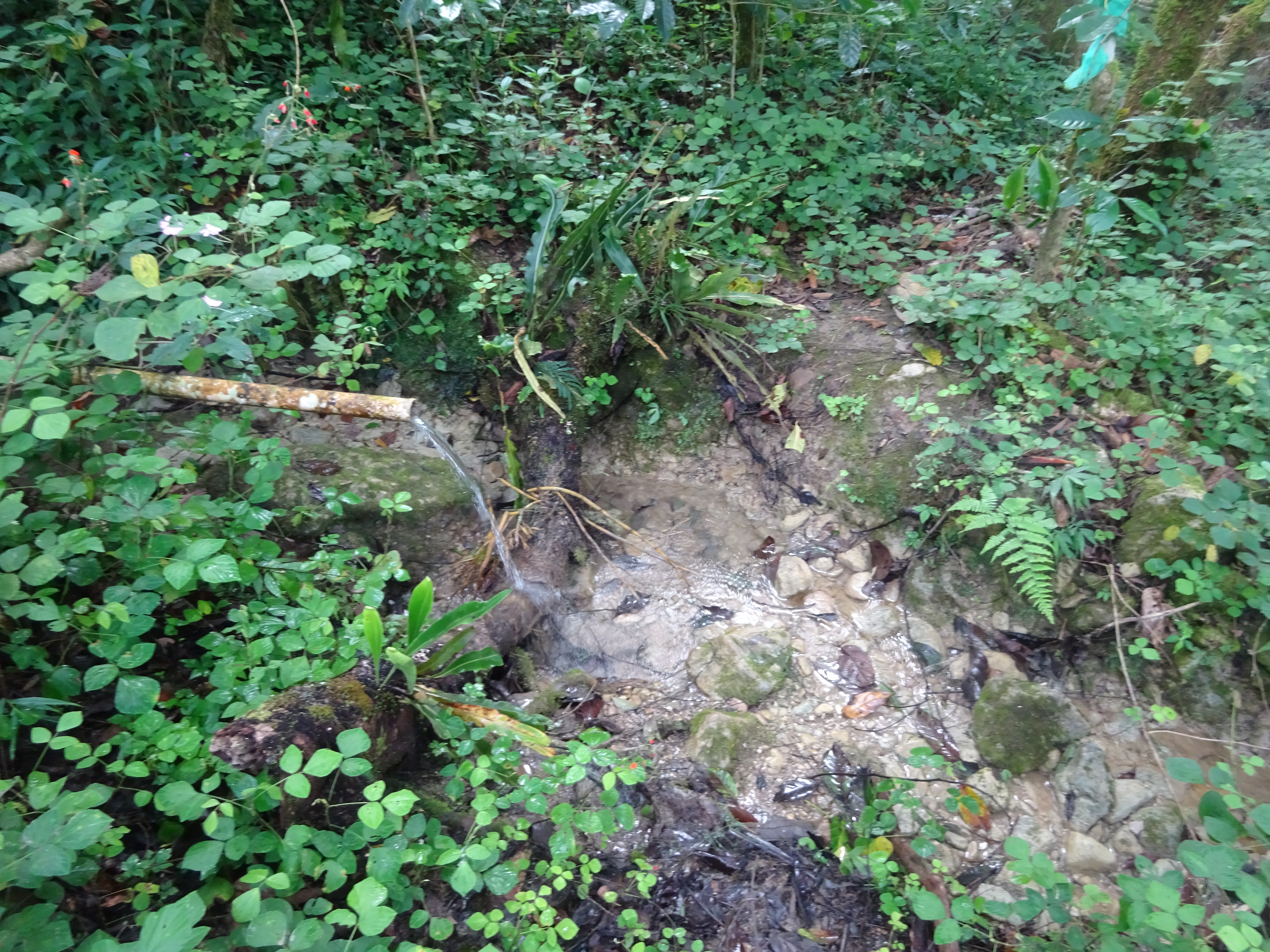 A small stream with a water pipe (1,539m) is the only place to top up water bottles, but given the shortness of the trek it is far from essential. Beyond the water pipe is Pos 2 (1,616m), at which point the trail has already entered proper forest. Pos 2 is a small, flat spot with enough space for a couple of small tents. Pos 3 (1,728m) is similar to Pos 2 in every respect.