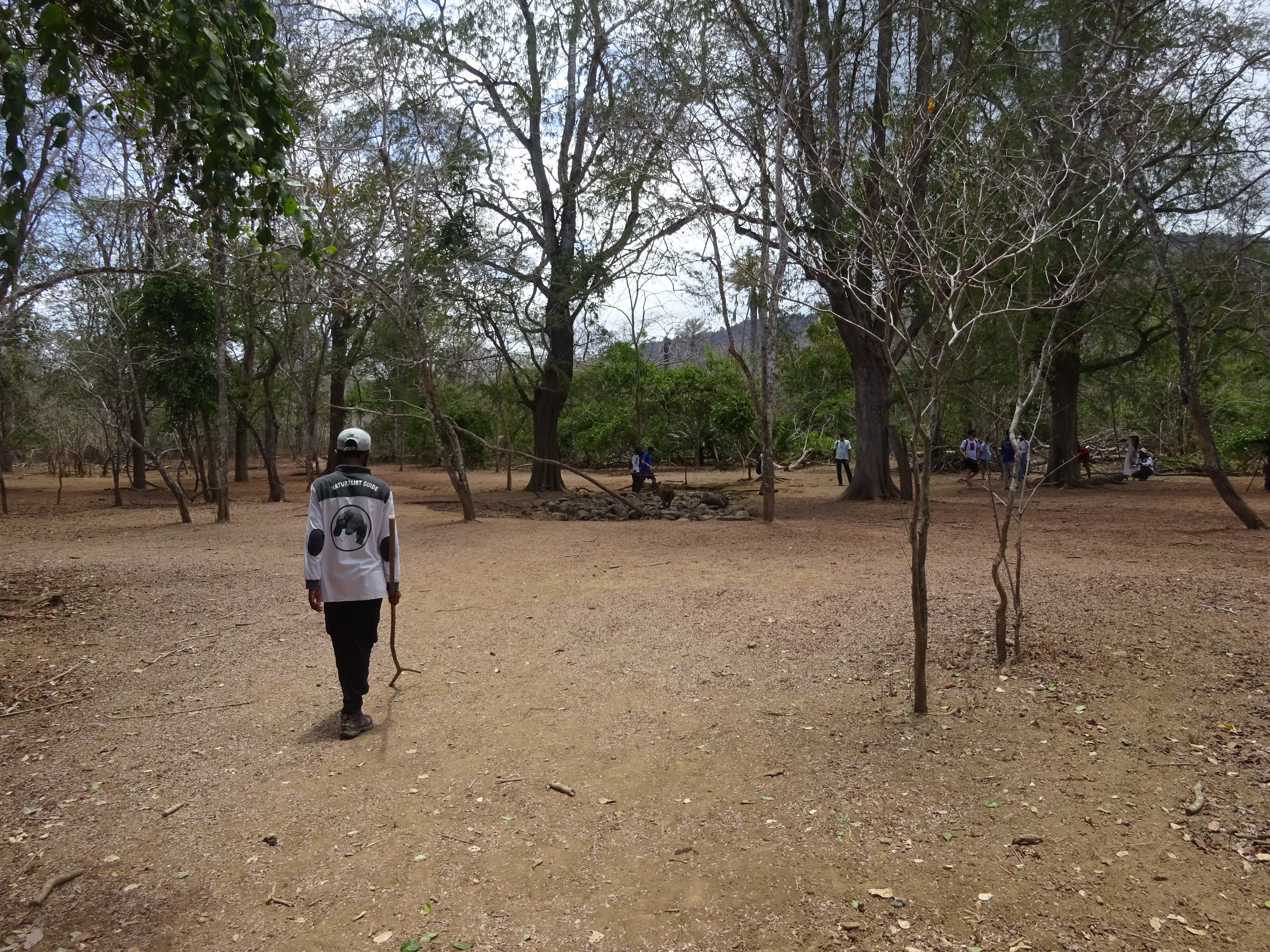 After just 10 minutes of trekking we were at the water hole, not natural I think I heard, presumably because the island is so incredibly dry. There was a wild pig, a deer, an emerald dove and two Komodo dragons, one hiding in the shade and a large one at the foot of a couple of trees. This was the obvious photo place and the rangers kindly took everyone’s photos crouched behind the massive lizard.