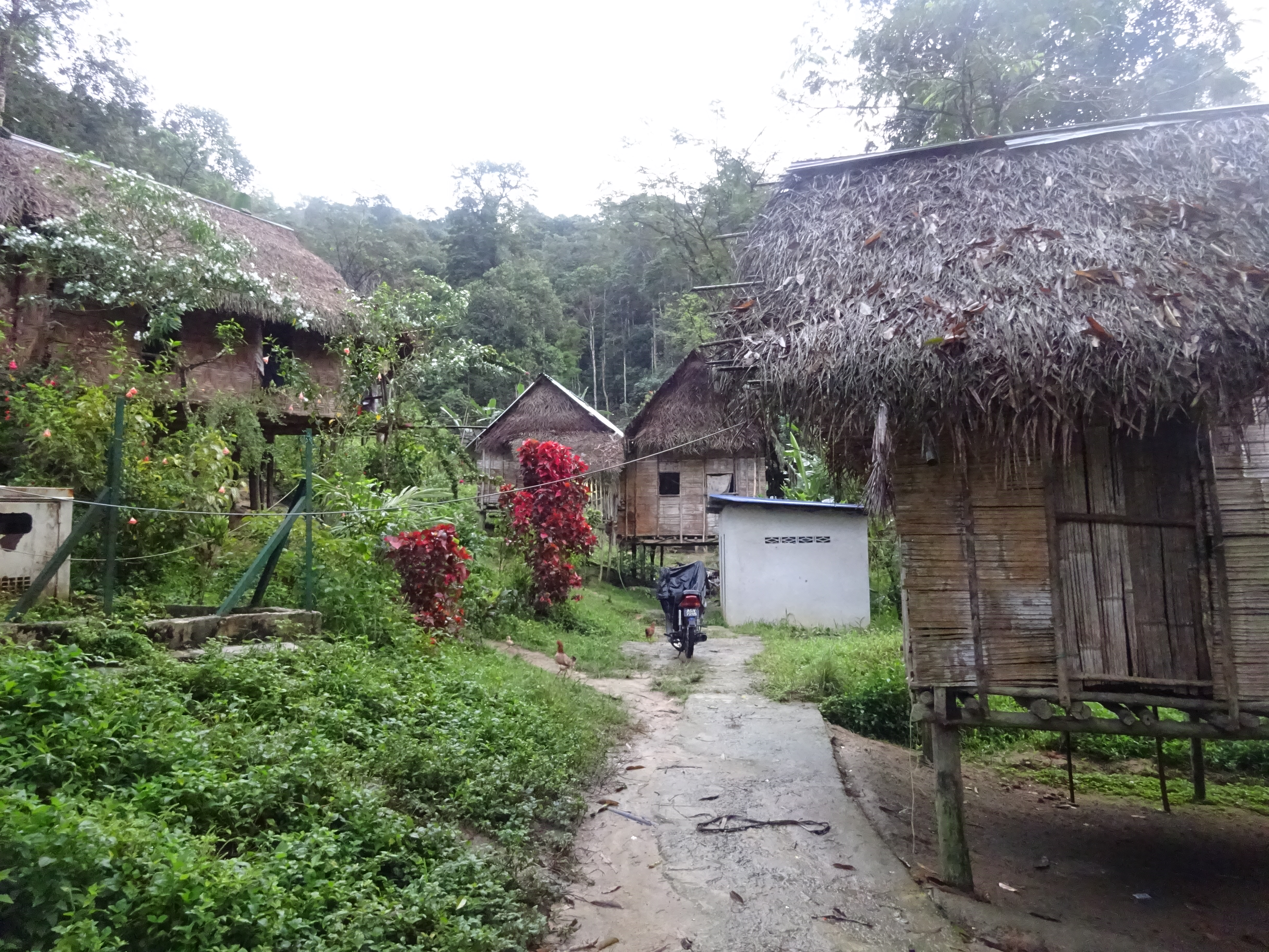 At first, the route drops immediately on a slippery and steep concrete path before rising up steeply on the other side of a small stream. Be careful here as it really can be slippery. Immediately afterwards you are in the final Orang Asli village. The trail leads near the river on fairly flat ground. However there are several trails with unmarked junctions so this can be quite confusing without a guide. Indeed, aside from the occasional piece of plastic tied to a branch, there are no signs until the peak itself.