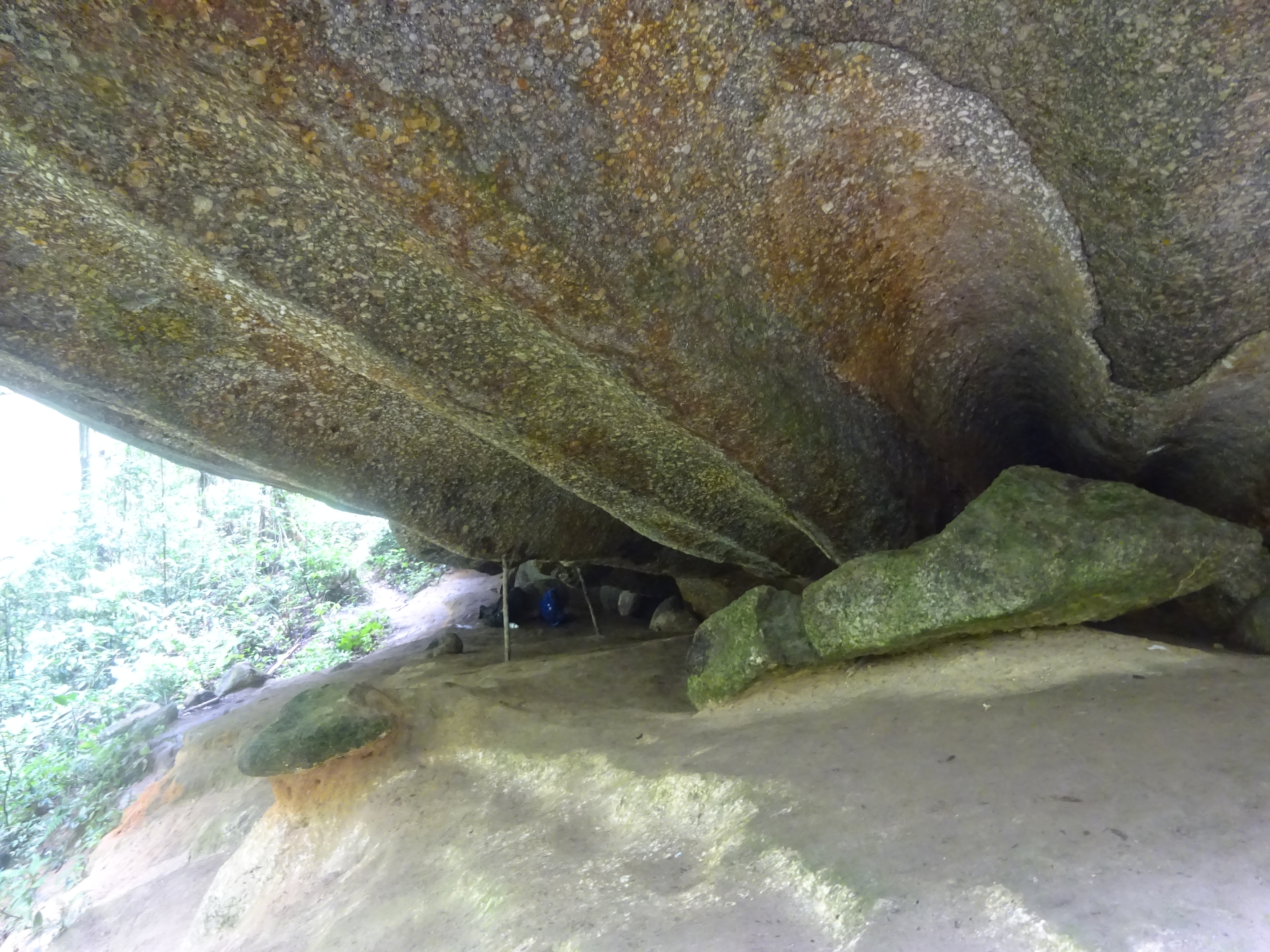 Beyond Balak 2 at a minor junction (1,173m), there is an option to hike via the impressive Gua Azan (1,170m – a large boulder providing shelter from the rain) before rejoining the main trail (1,217m). Gua Azan is the last easy place to find water – with a lovely torrent gushing from inside the rocks – and therefore makes sense to have lunch and fill up bottles here. You should have reached this point in around 5-6 hours from the very beginning (not including any long breaks).