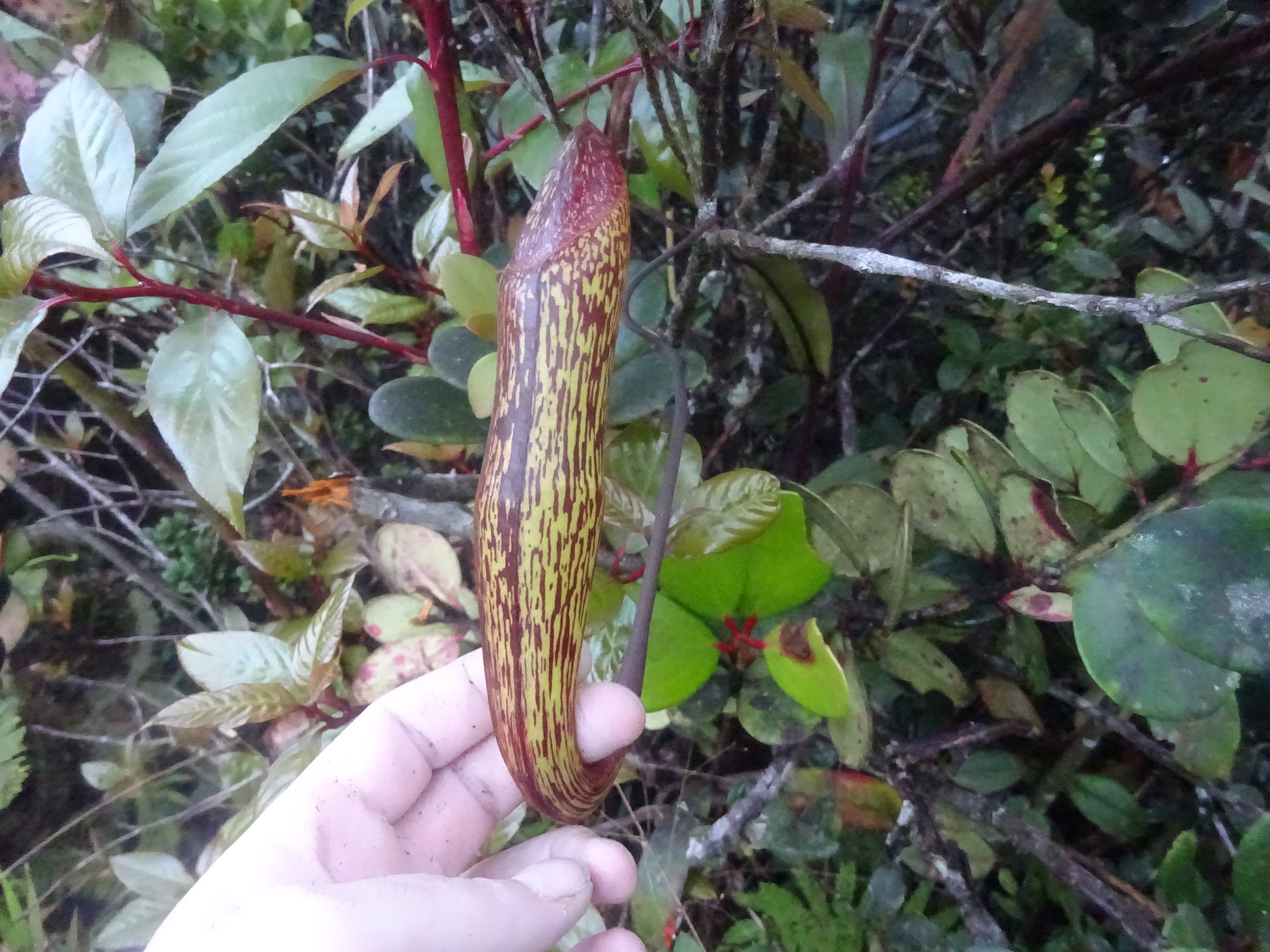 Just as you feel there will be no end to it, you find yourself at the summit, which is a lovely, grassy clearing with enough space for 8 or more tents. The beirut does not have its panels attached – two pieces are lying nearby which were perhaps blown off by strong winds. There are some nice pitcher plants here and if you are lucky you can just about look down to lower hills to the west from inside the beirut frame and perhaps even be treated to a sunset.