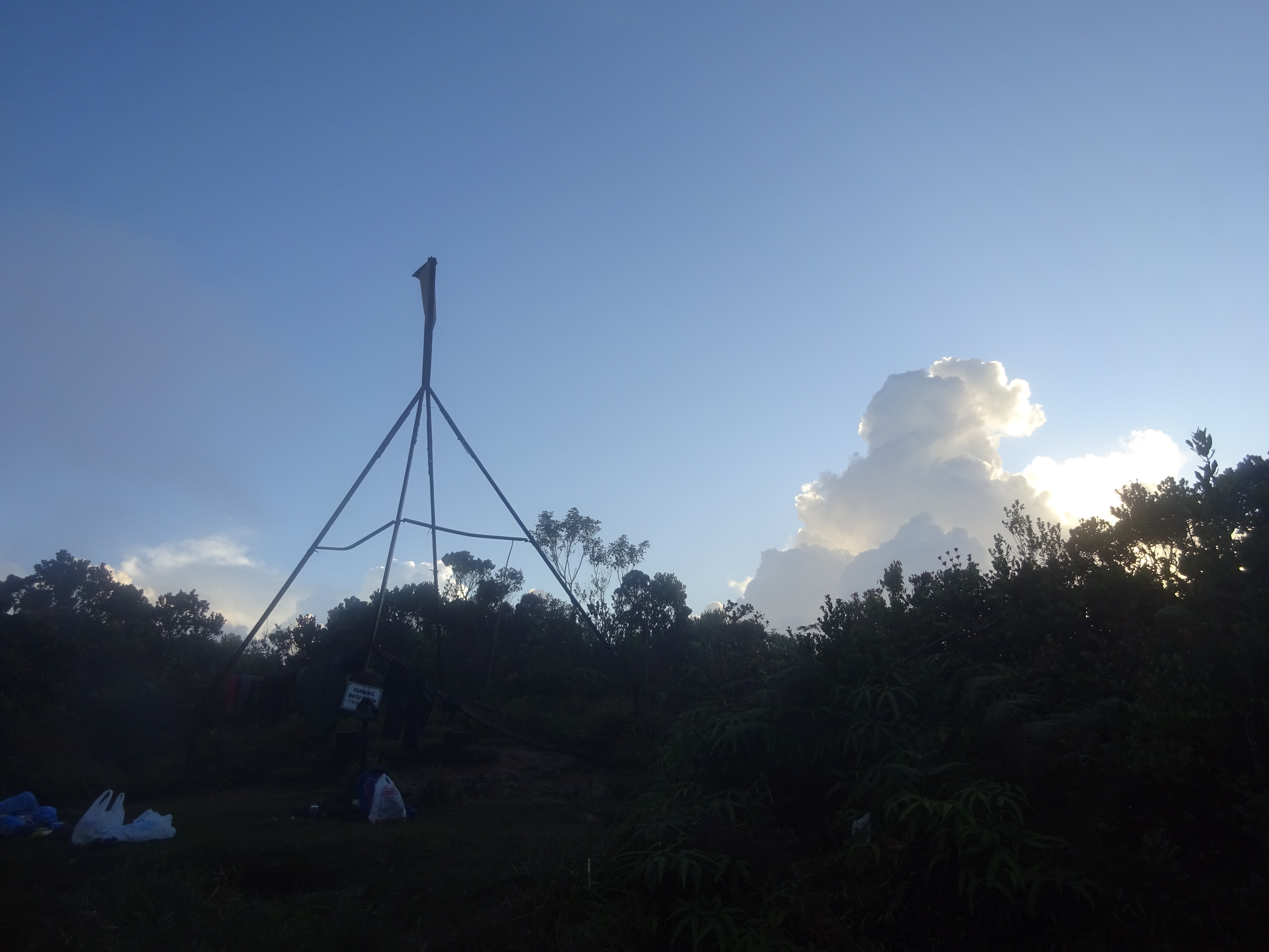- Water sources: Available at several points on the trail but none available at the summit. Last easy source is at Gua Azan (1,170m).
