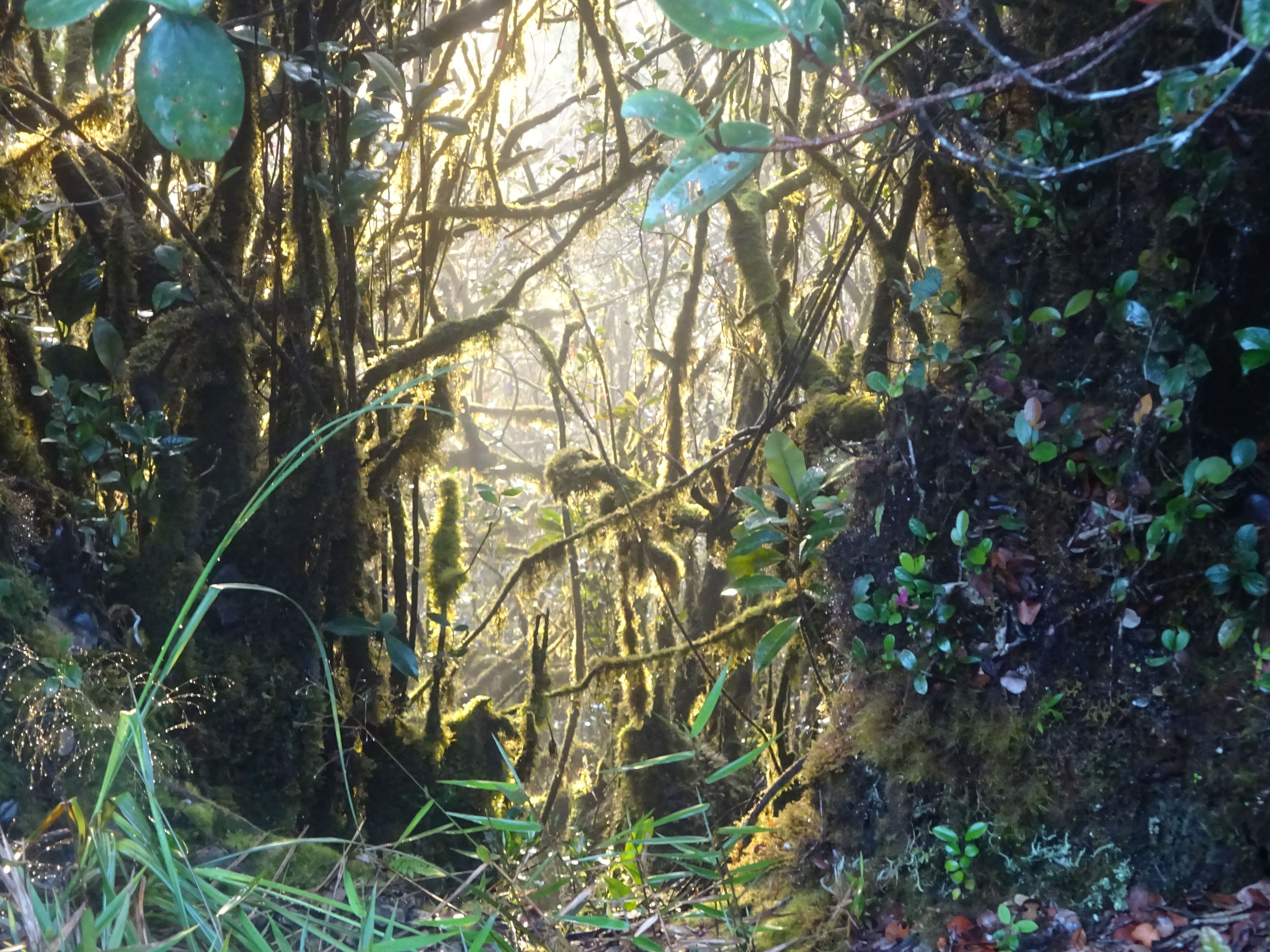 The true summit has a metal beirut at the top and is a further 1.5 to 2 hours. As is common on the highest parts of the ridges, the terrain is beautiful mossy forest yet incredibly slow-going and tiring for hikers having to squelch through mud, lift legs over high tree trunks, duck under spiky plants and occasionally crawl.