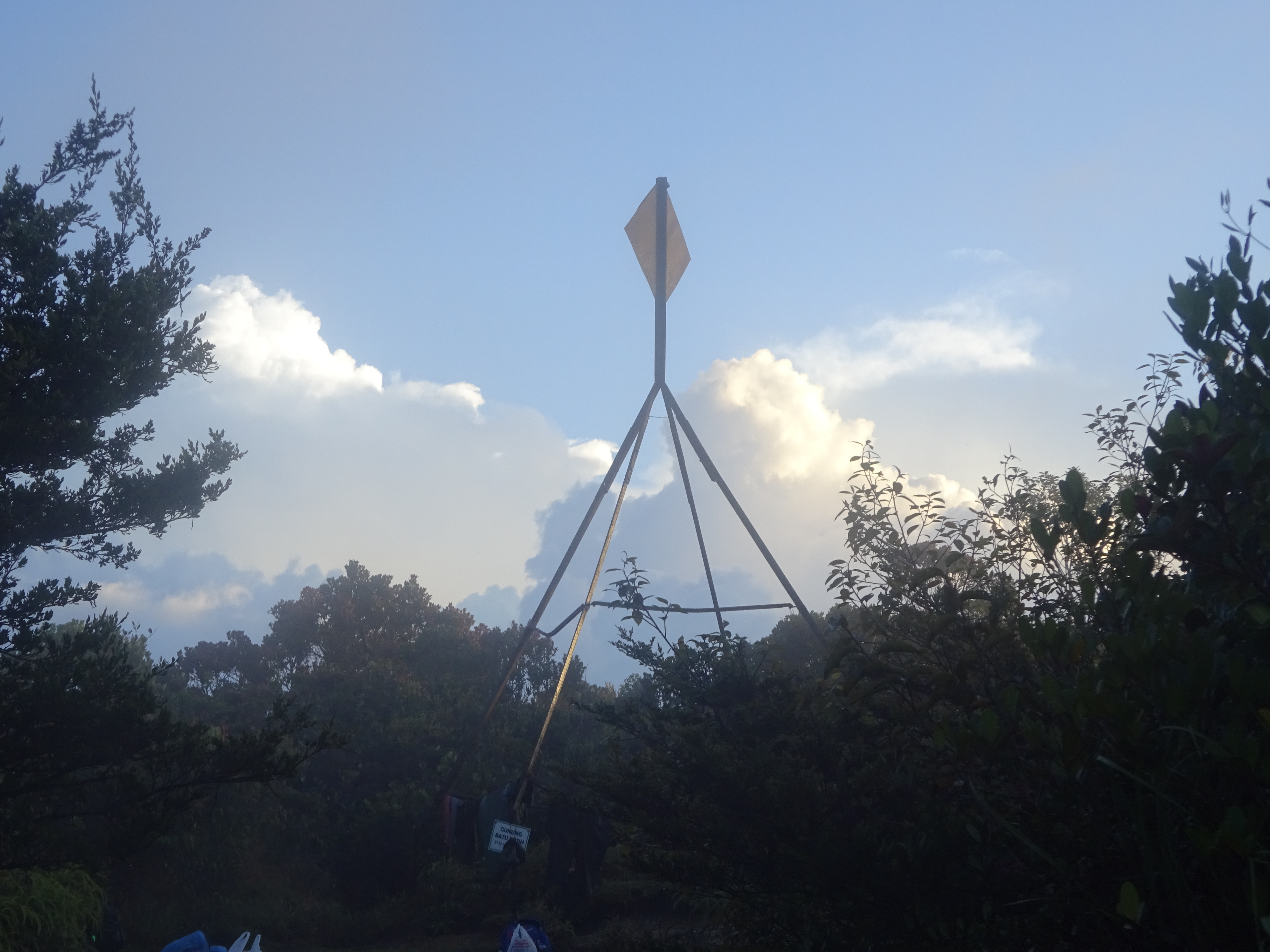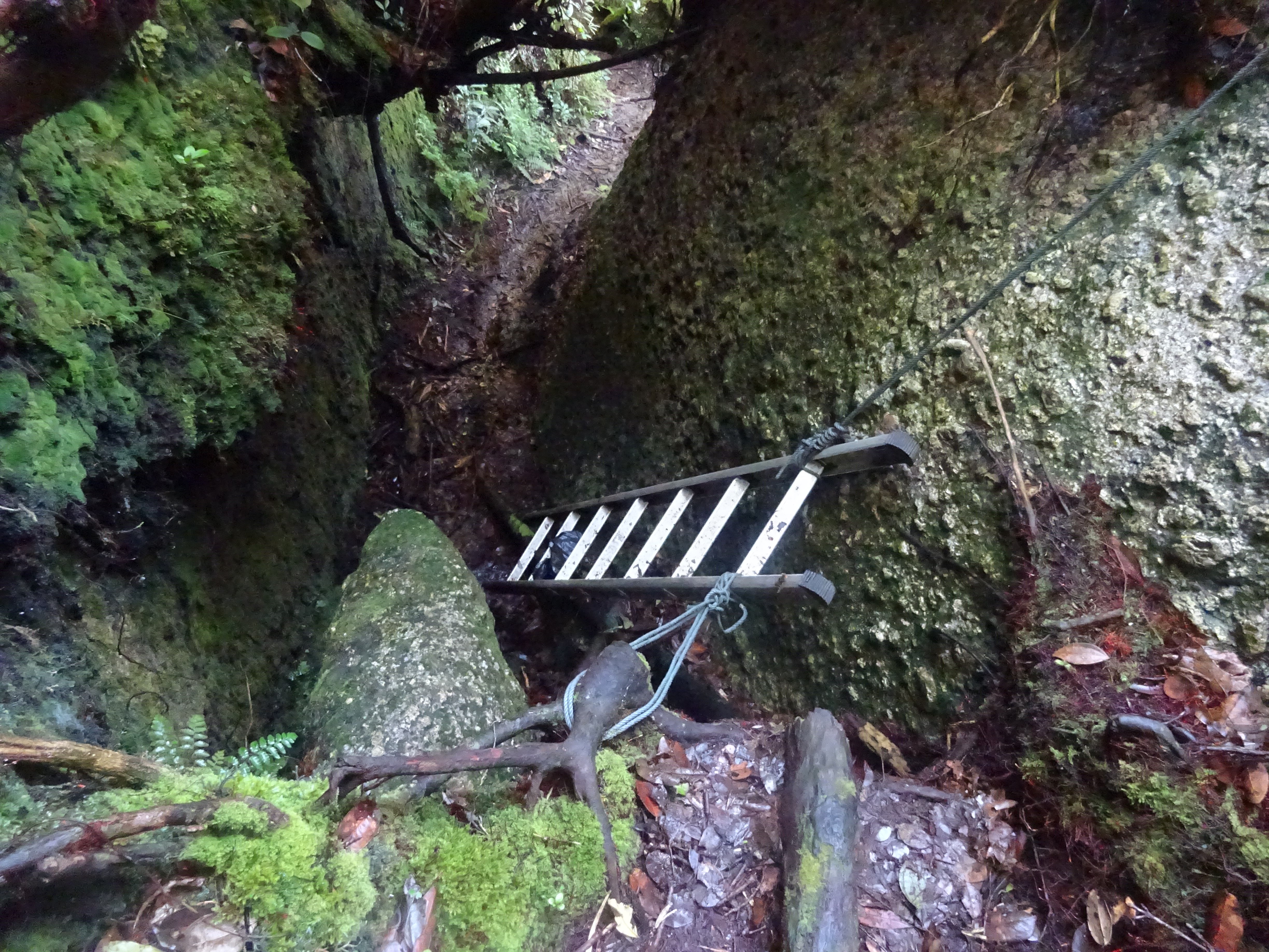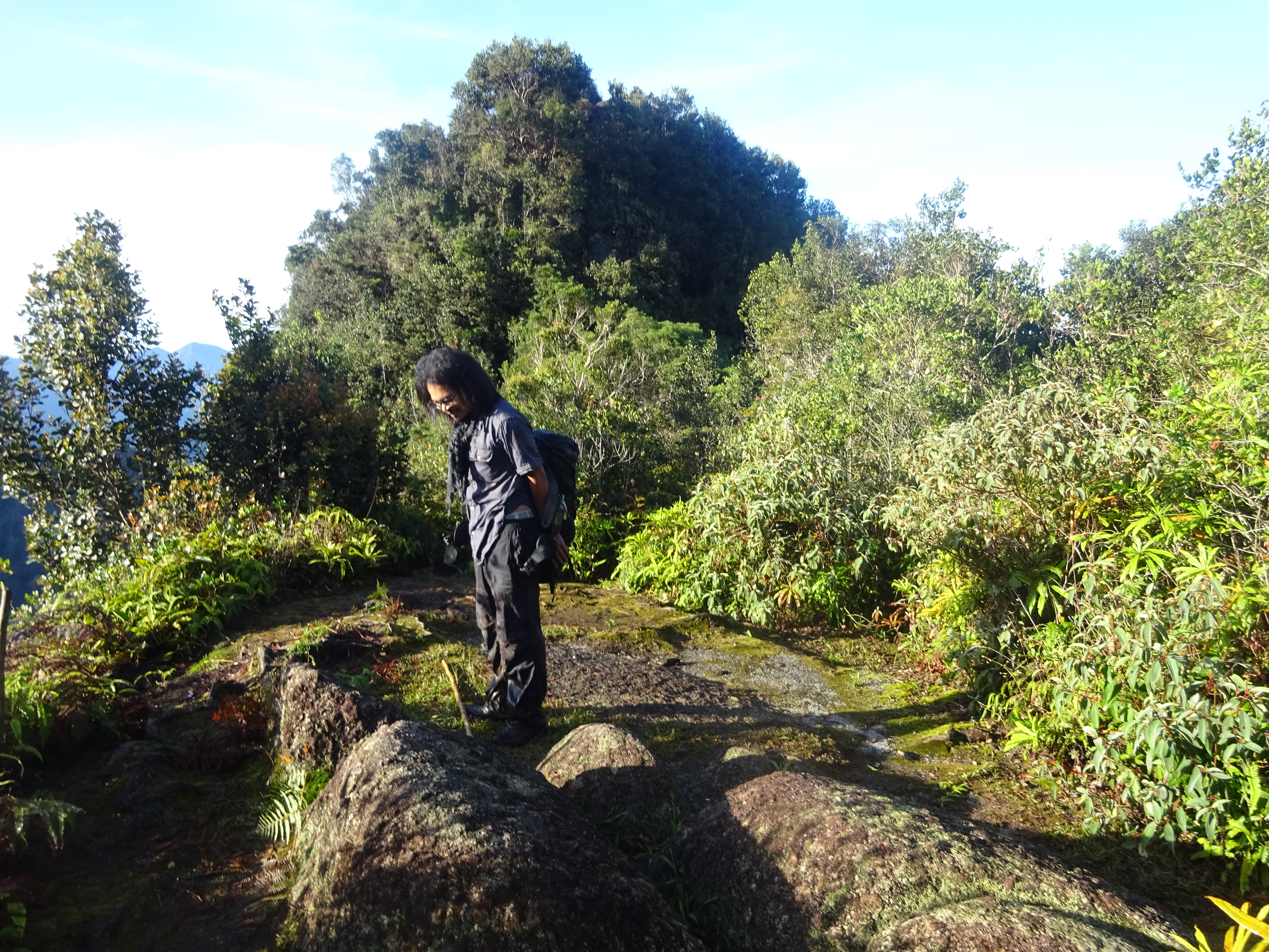 The next major landmark is a cluster of large rocks with several aluminium ladders (1,400m) attached somewhat loosely to them. You can tell you are approaching this as the trail gets progressively steeper and then near-vertical! It is only around 1 hour beyond Gua Azan.
