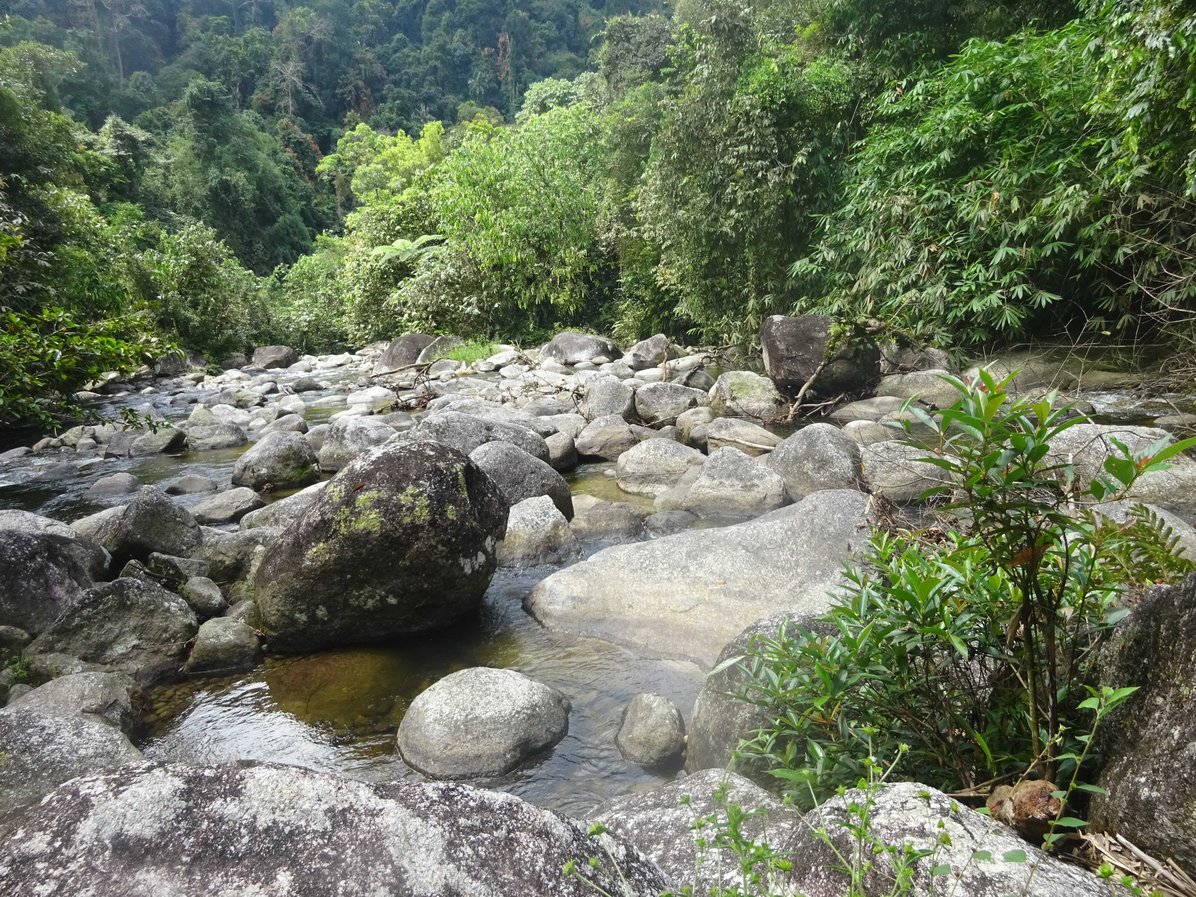 The trail then leads up via Kem Balak 1 (500m), an un-named Pos inbetween (874m) and Kem Balak 2 (1,045m). All these spots are fine for camping at and water is never too far away but ideally you want to be higher up. Look out for wild pigs and hornbills in this area.