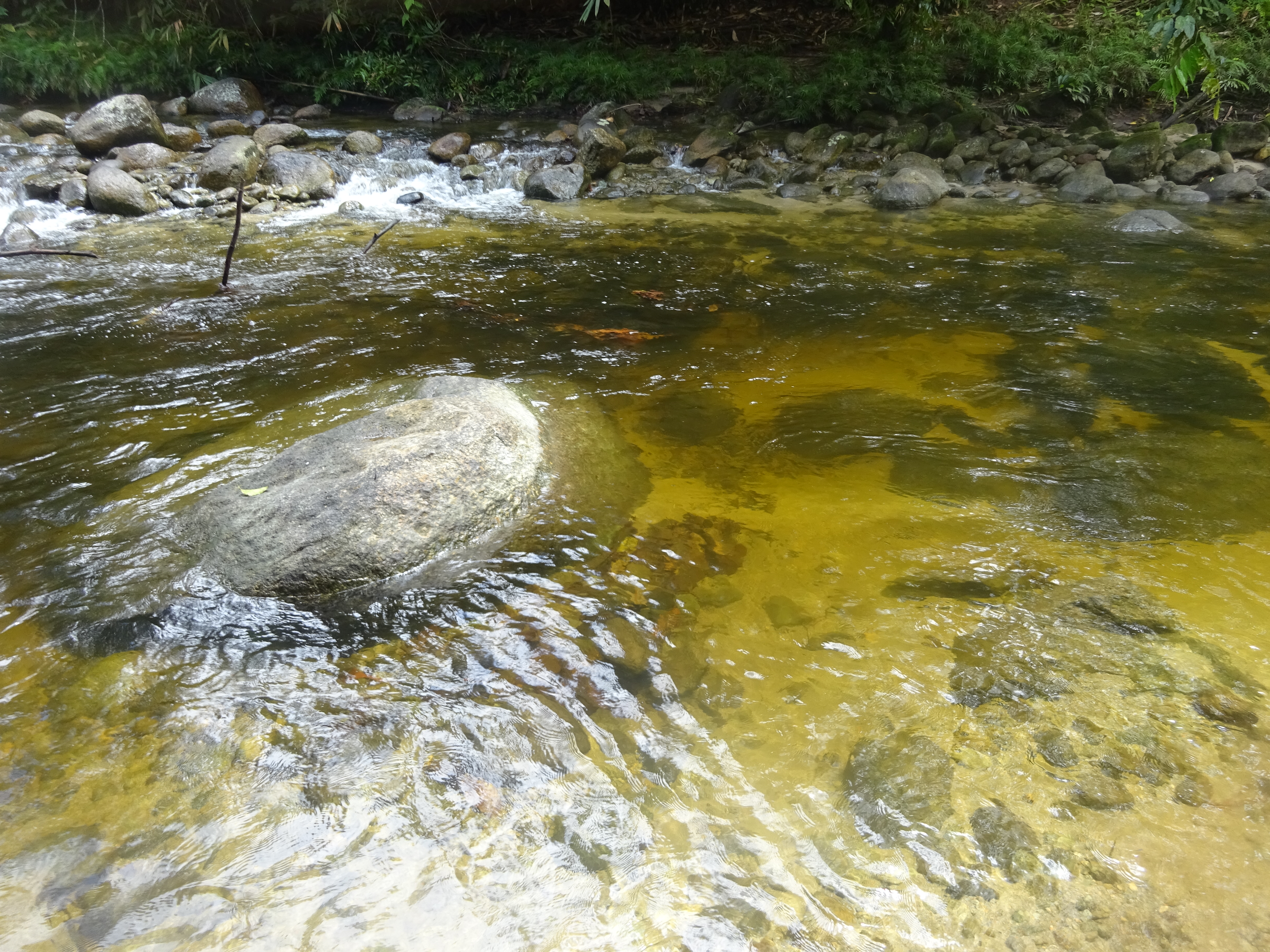 The bamboo bridge could only be described by any health and safety officer as exceedingly dangerous! For local villagers it is probably very simple to get across, but hikers from the city are likely to be somewhat daunted when they see what they have to do! If the river is reasonably low, it is safest to wade across rather than use the bridge. After heavy rain when the river is swollen and fast-moving, the Orang Asli bridge is the only real option (aside from cancelling your hike or waiting several hours)!