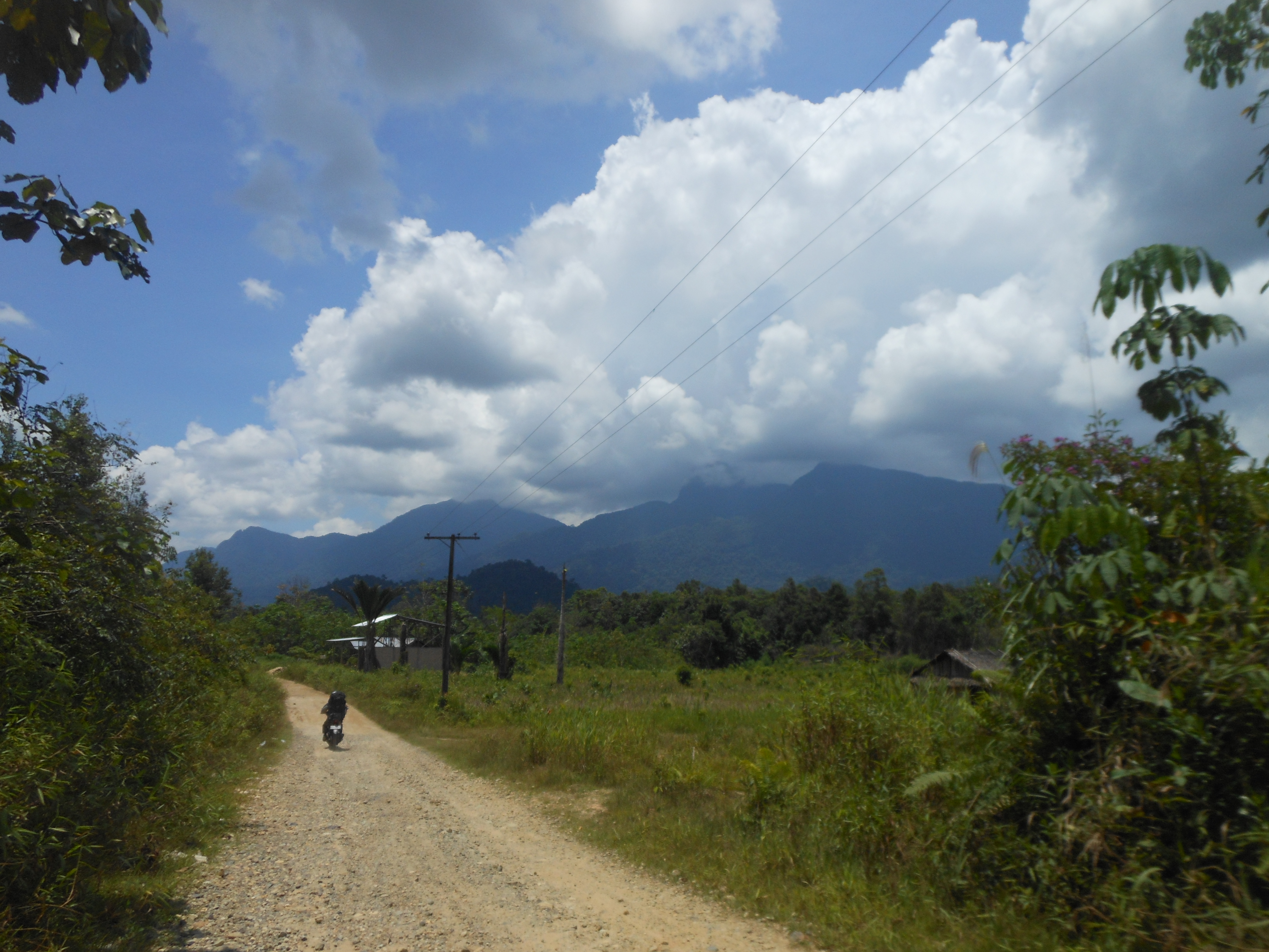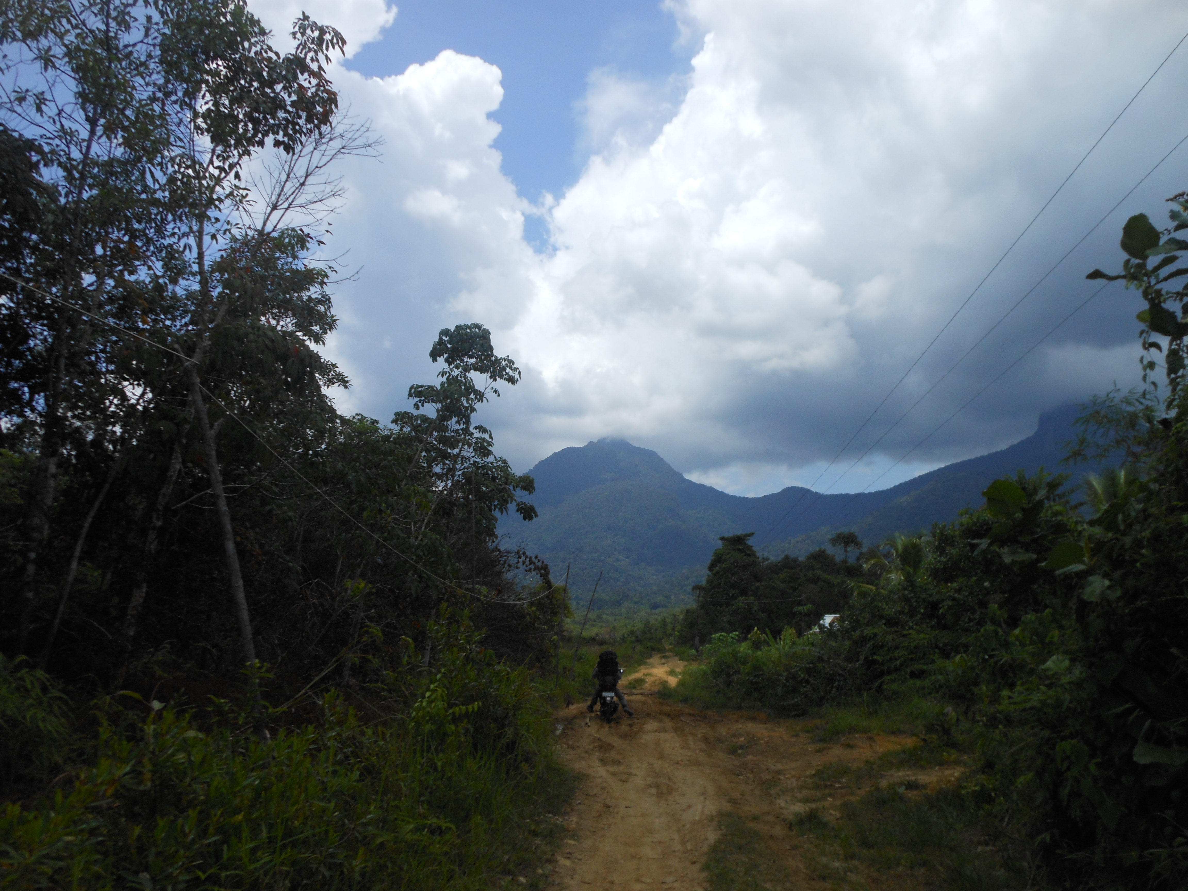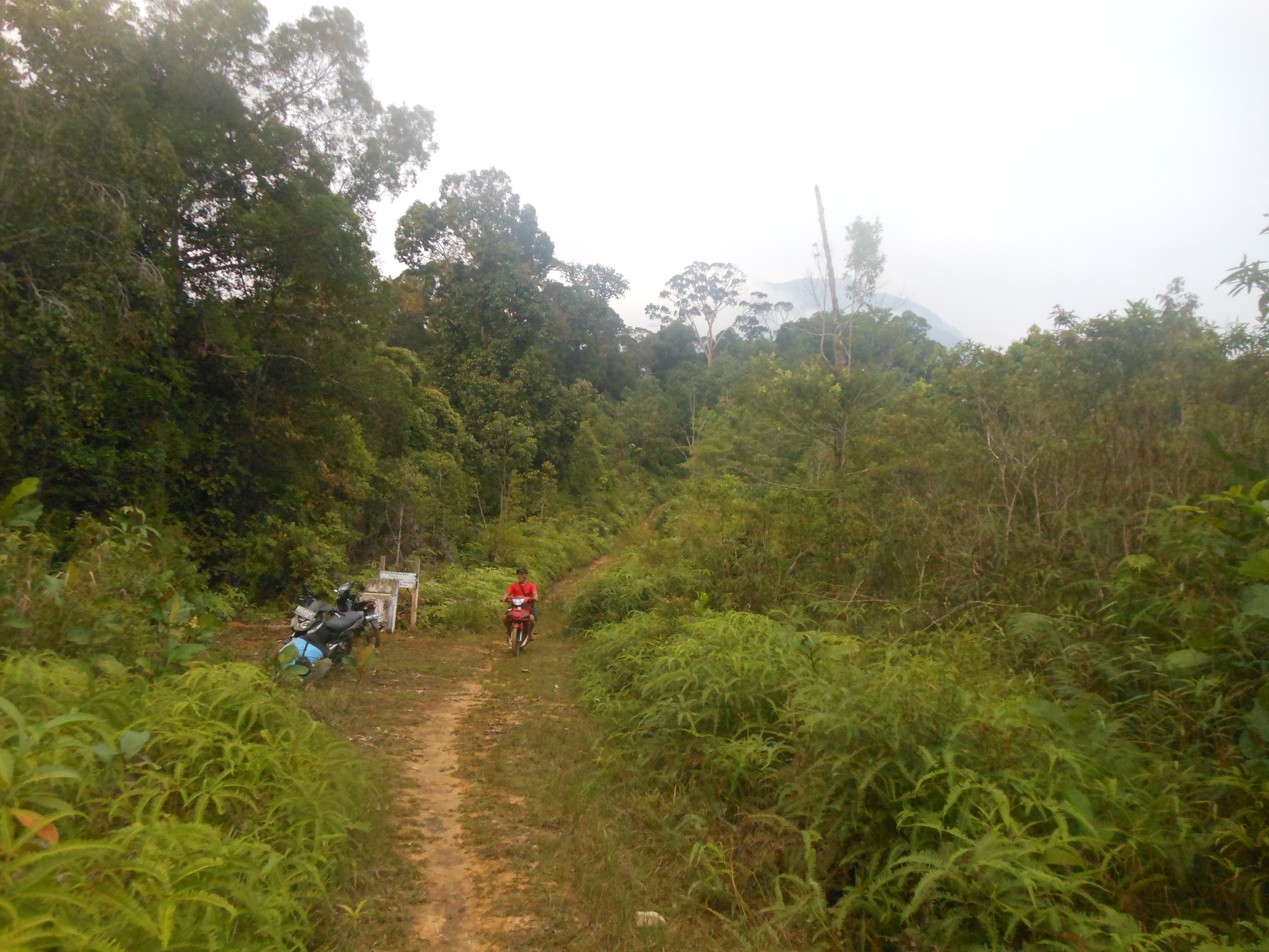 There are two trailheads – one at Desa Madi near Bengkayang and one at the village of Sungai Betung down a rough track which runs alongside a river and below the mountain itself. The latter is slightly more accessible and shorter – and so more frequently used. A couple of warungs selling snacks and drinks marks the junction – a few kilometres before Bengkayang – where you must turn left down a track to Sungai Betung village. Allow one hour and take motorbikes because there is a river which is often too deep to ford in four-wheel vehicles (so you instead take your motorbikes over the pleasant bridge).