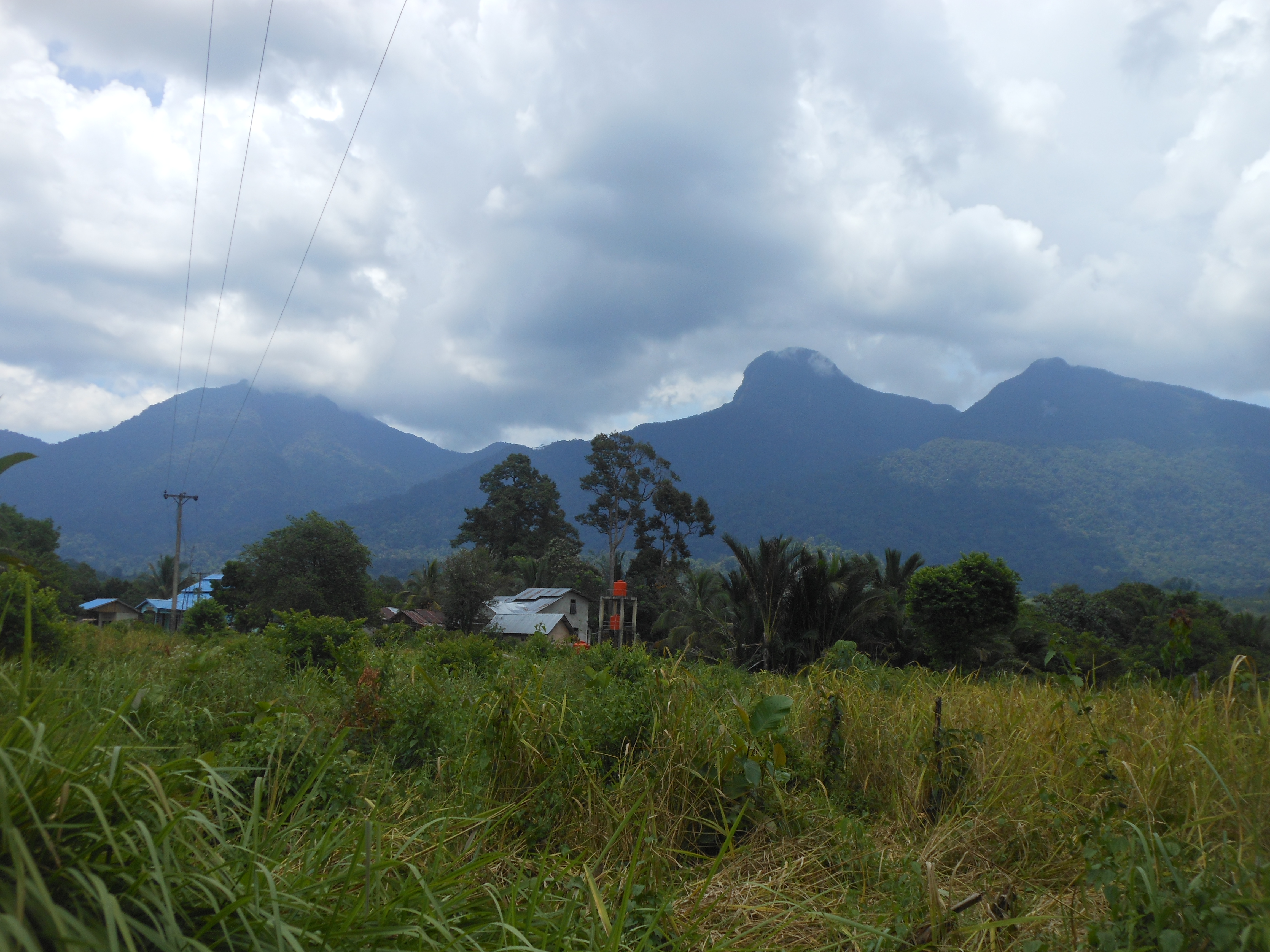 The large, prominent peak to the south is Gunung Berasi – the second highest in the range at approximately 1,415m. The Bakosurtanal map lists Bawang as 1,265m and Berasi as 1,224m but both of these figures are considerably lower than the real elevations.