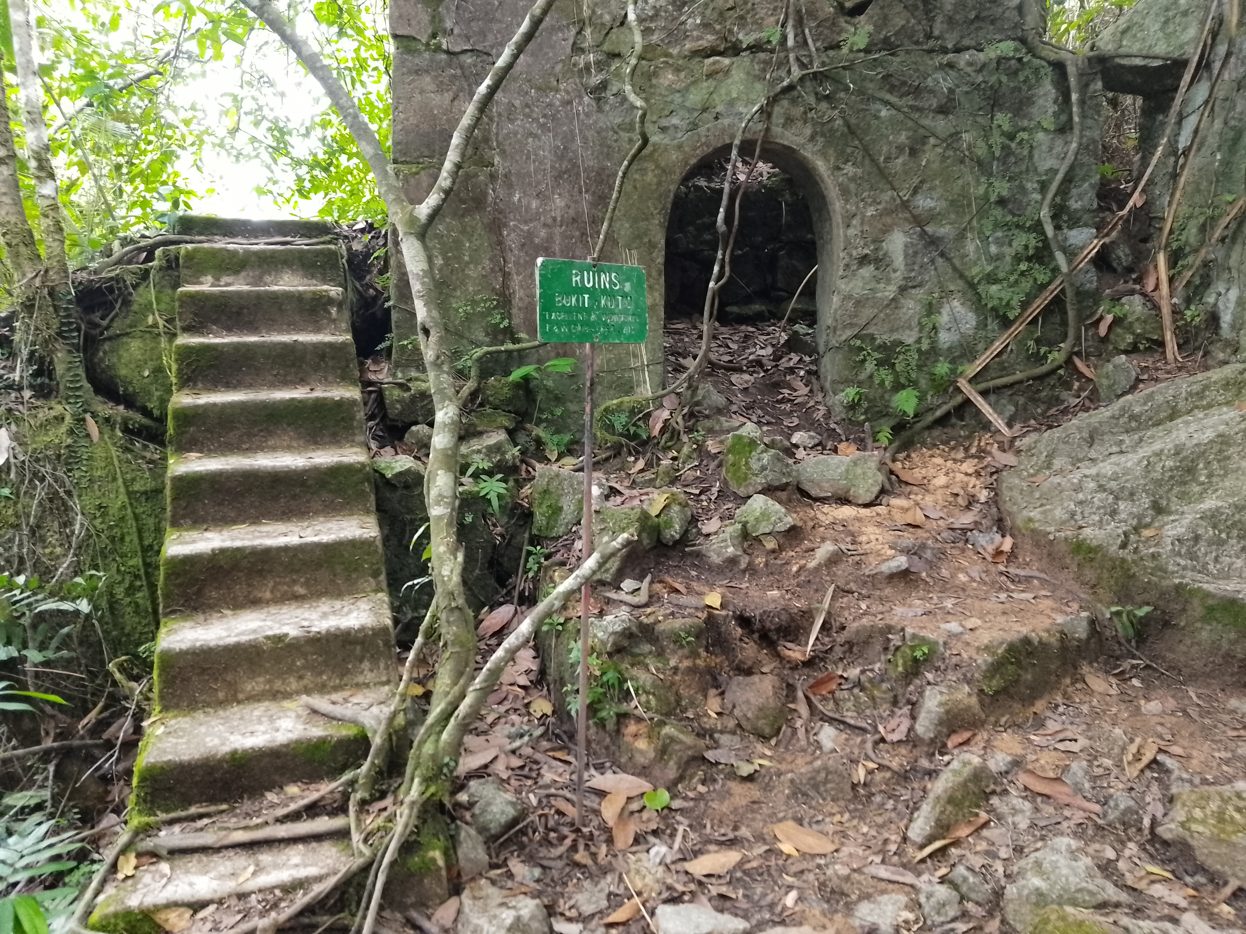 Bukit Kutu was first established as a minor hill station in 1893, with two bungalows being constructed in 1895 and 1904. Each apparently had a telephone, fireplace, telescope and there was also a tennis court. The bridle path was regarded as poor quality and ultimately the hill station fell into disuse, being mere ruins by 1935. The hill was also bombed by the Japanese during the Second World War. By the mid-twentieth century the hill station was a ghost town. And in 2023, a chimney above a fireplace, entrance steps and two wells is all that remains of one of the two bungalows near the summit.