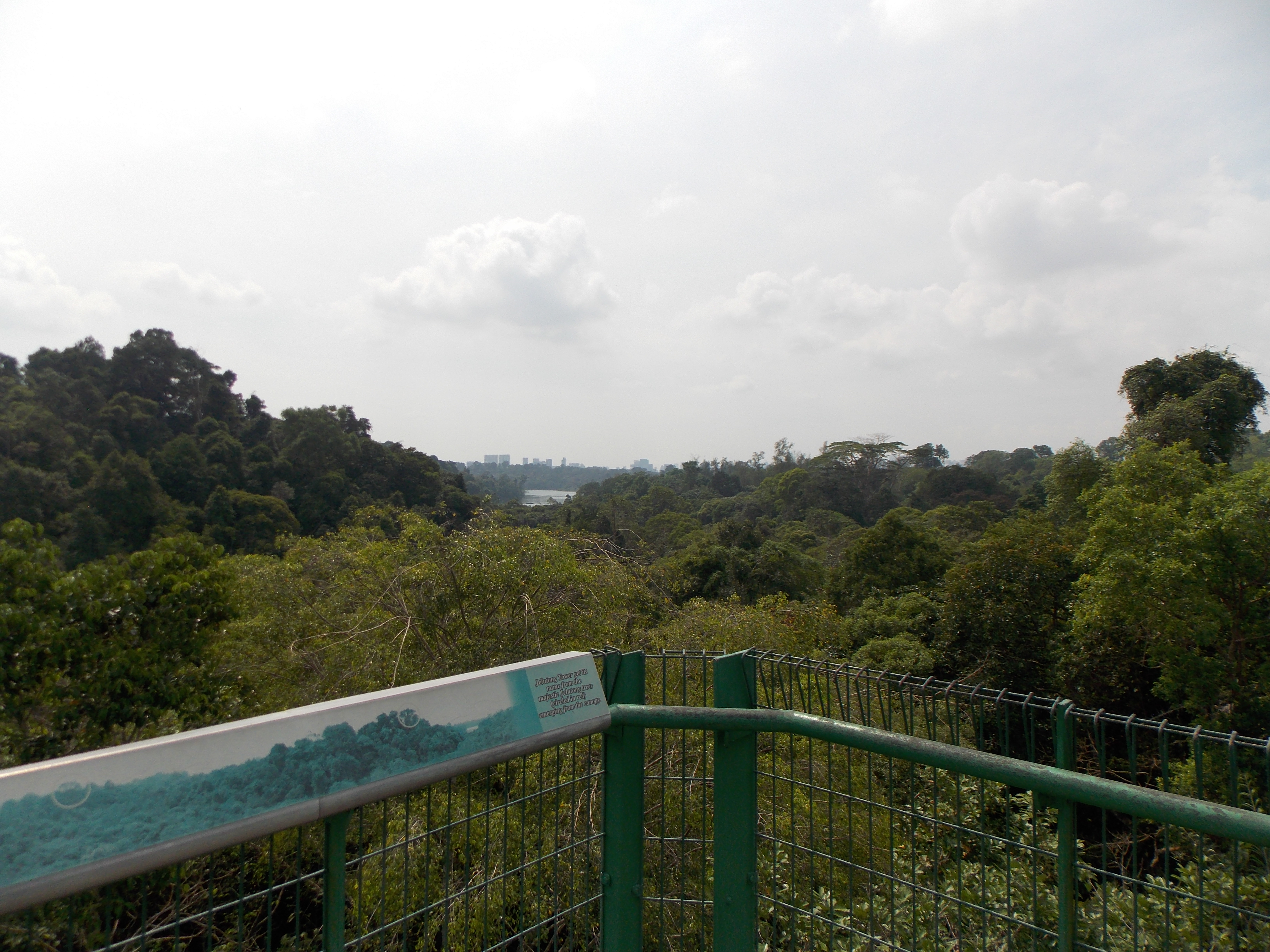 An ascent of Bukit Timah can also be combined with the Jelutong Tower between Upper Peirce Reservoir and MacRitchie Reservoir which has pleasant views. To continue eastwards on this rewarding trek with a total distance of around 11 kilometres, head down the Catchment path which brings you out at a cleared section of land popular with mountain bikers. Take a right here (downhill) and bear left onto Rifle Range Road. This is the least inspiring part of the half-day out, as it crosses BKE (Bukit Timah Expressway) and leads past numerous restricted-access compounds.