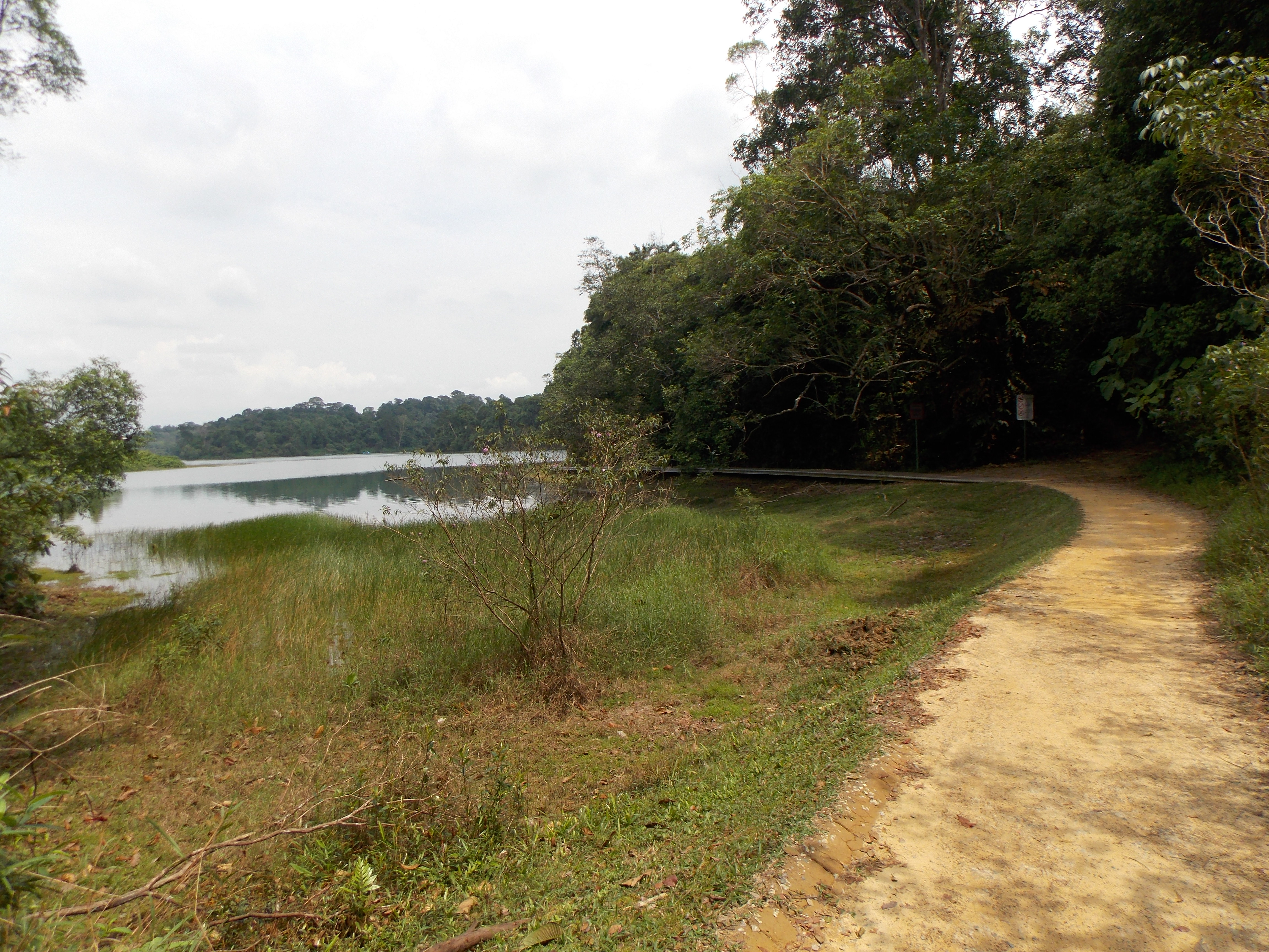 Finally you will be back on a proper trail which seems to be an area with a population of wild pigs. The trail veers right towards the Jelutong Tower, but a hundred metres before the observation tower is the important junction where you need to decide to either take the Nature Trail via the ranger station and path to the north of the reservoir or the southern path which skirts the edge of the reservoir and an extensive golf course.