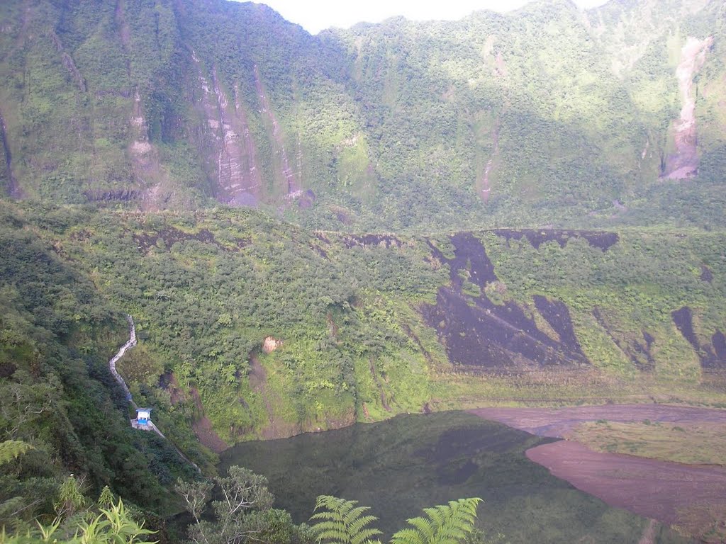 Beyond Pos 5, the trail gets much steeper and much more slippery, with less black volcanic sand and more mud and roots. There is a clear view to the left of the trail (1,727m) at one point but then the vegetation once again closes in until almost at the very top.