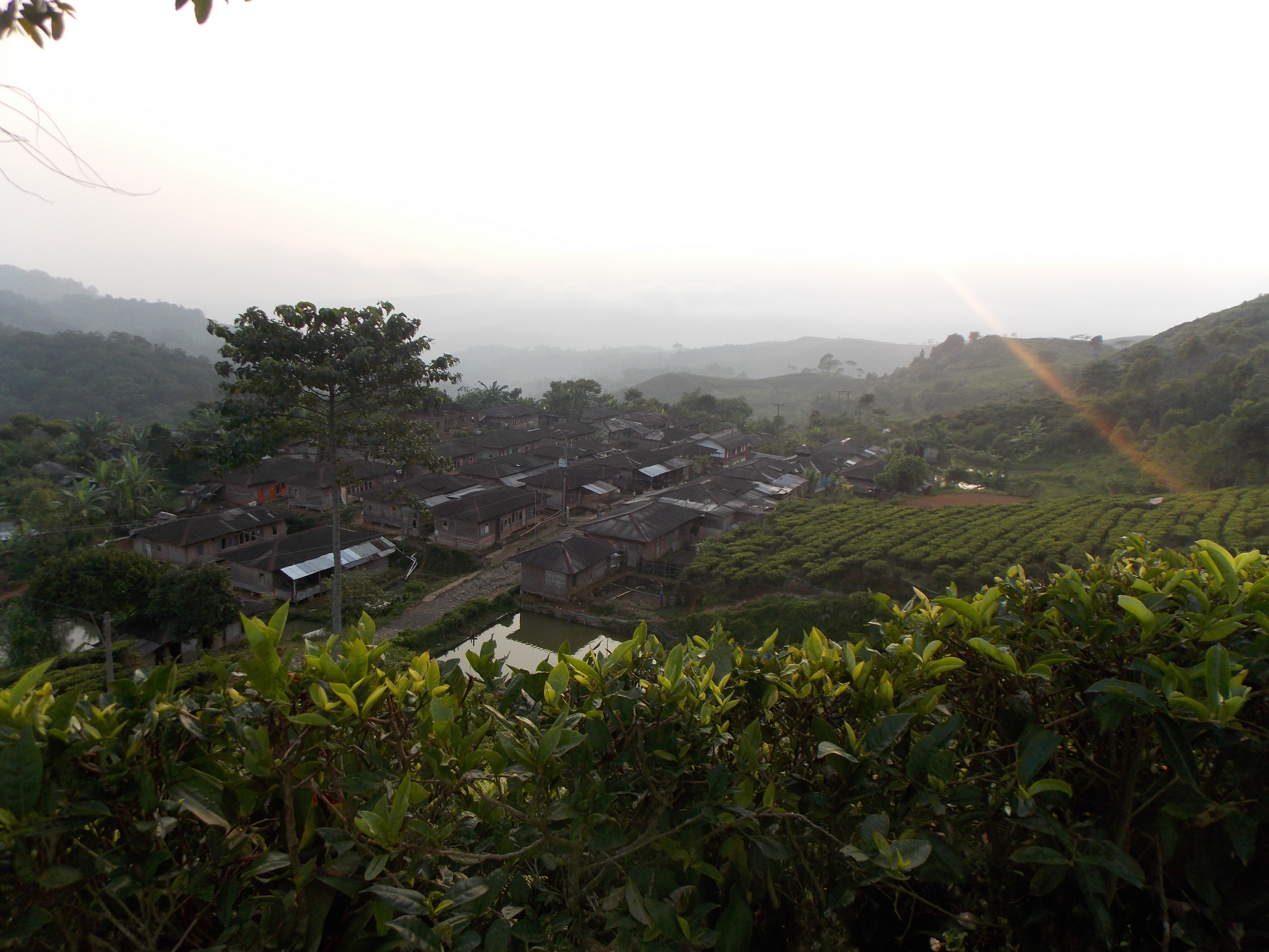 We were up at 5am and continued on the track which deteriorated permanently soon afterwards. Lots of police training goes on in this area, so don’t be alarmed when you see signs with ‘jungle warfare’ on them! Alas, the morning was overcast so there was no great sunrise but still it was lovely to be in the middle of a tea plantation all of a sudden. We left the car at the 2km Nirmala sign junction and walked up to the surreal buildings and village at the very upper reaches of the tea estate. Even weirder to see a Sinarmas training centre up here. Lovely spot, but can’t see it being used very much given the state of the road in.