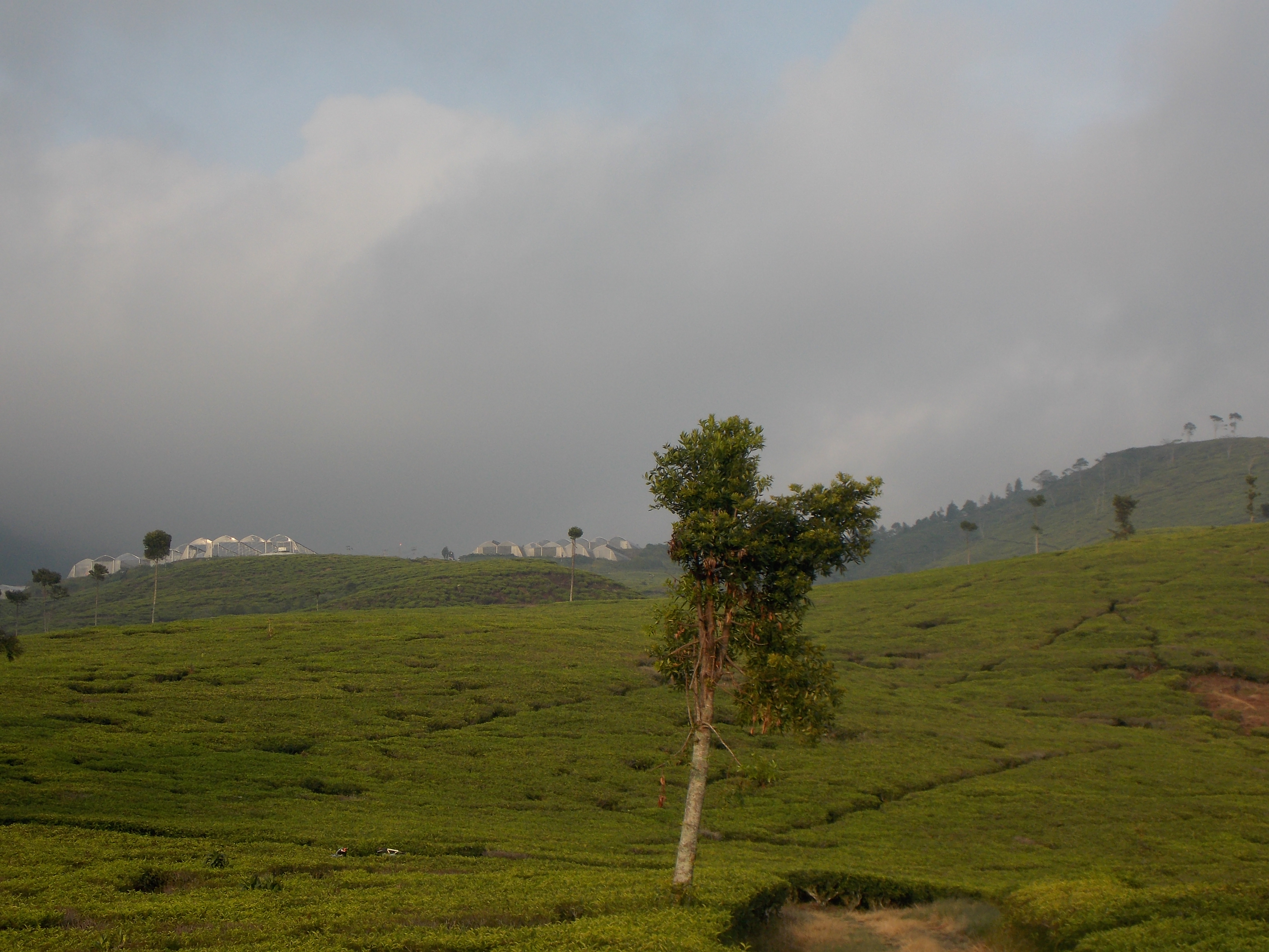 It is a surreal location – vast tea plantations with seemingly very few people for many kilometres and then suddenly a large village appearing out of the blue. Between Nirmala greenhouses (where there is a warung) and Pasir Banteng (the end of the track leading up into the hills) is a large training centre owned by the Sinarmas group. There is even a usually-deserted restaurant here, but be warned that the prices are extortionate for the few hikers or tourists who pass by this way.