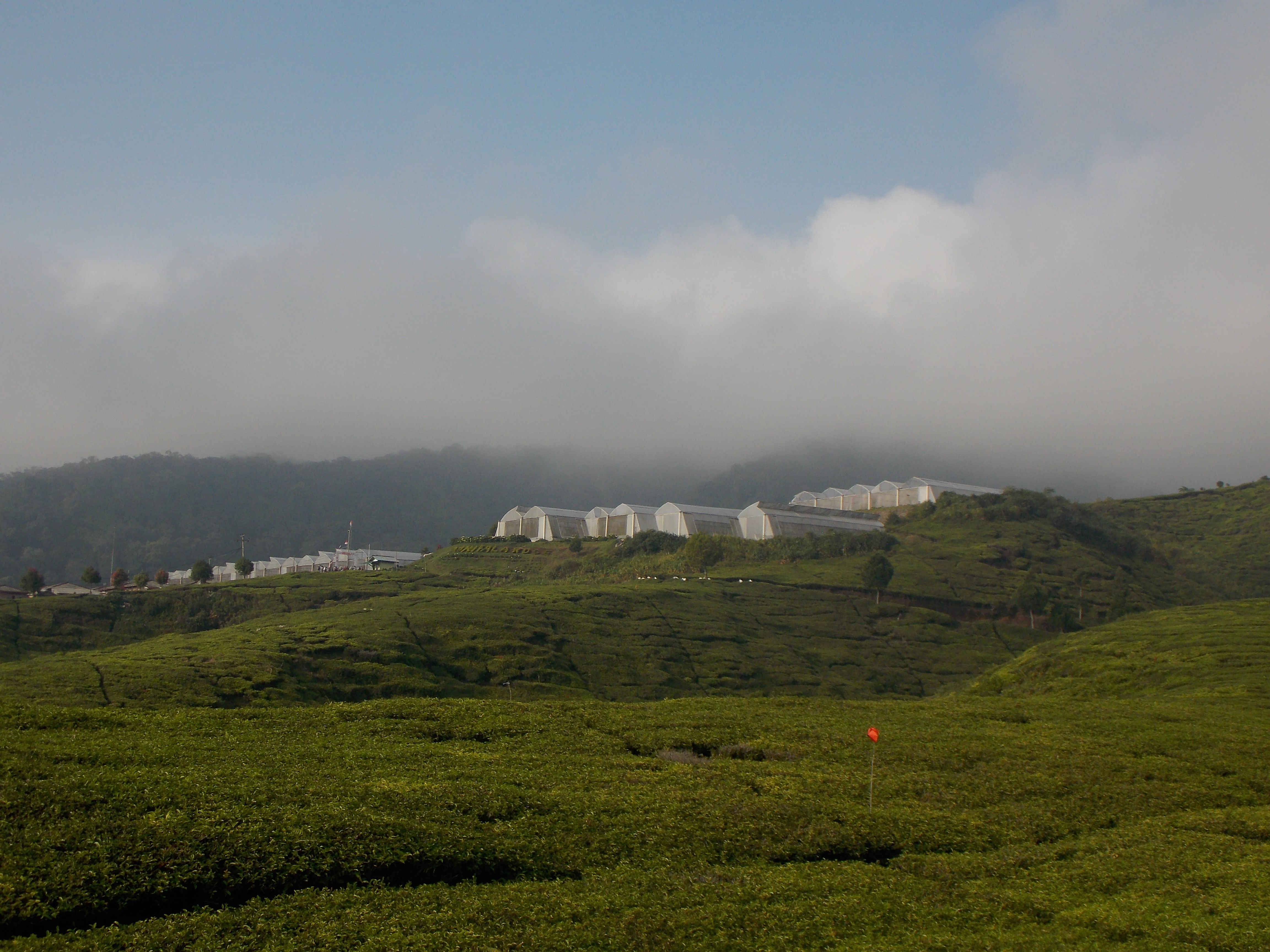 It is a surreal location – vast tea plantations with seemingly very few people for many kilometres and then suddenly a large village appearing out of the blue. Between Nirmala greenhouses (where there is a warung) and Pasir Banteng (the end of the track leading up into the hills) is a large training centre owned by the Sinarmas group. There is even a usually-deserted restaurant here, but be warned that the prices are extortionate for the few hikers or tourists who pass by this way.