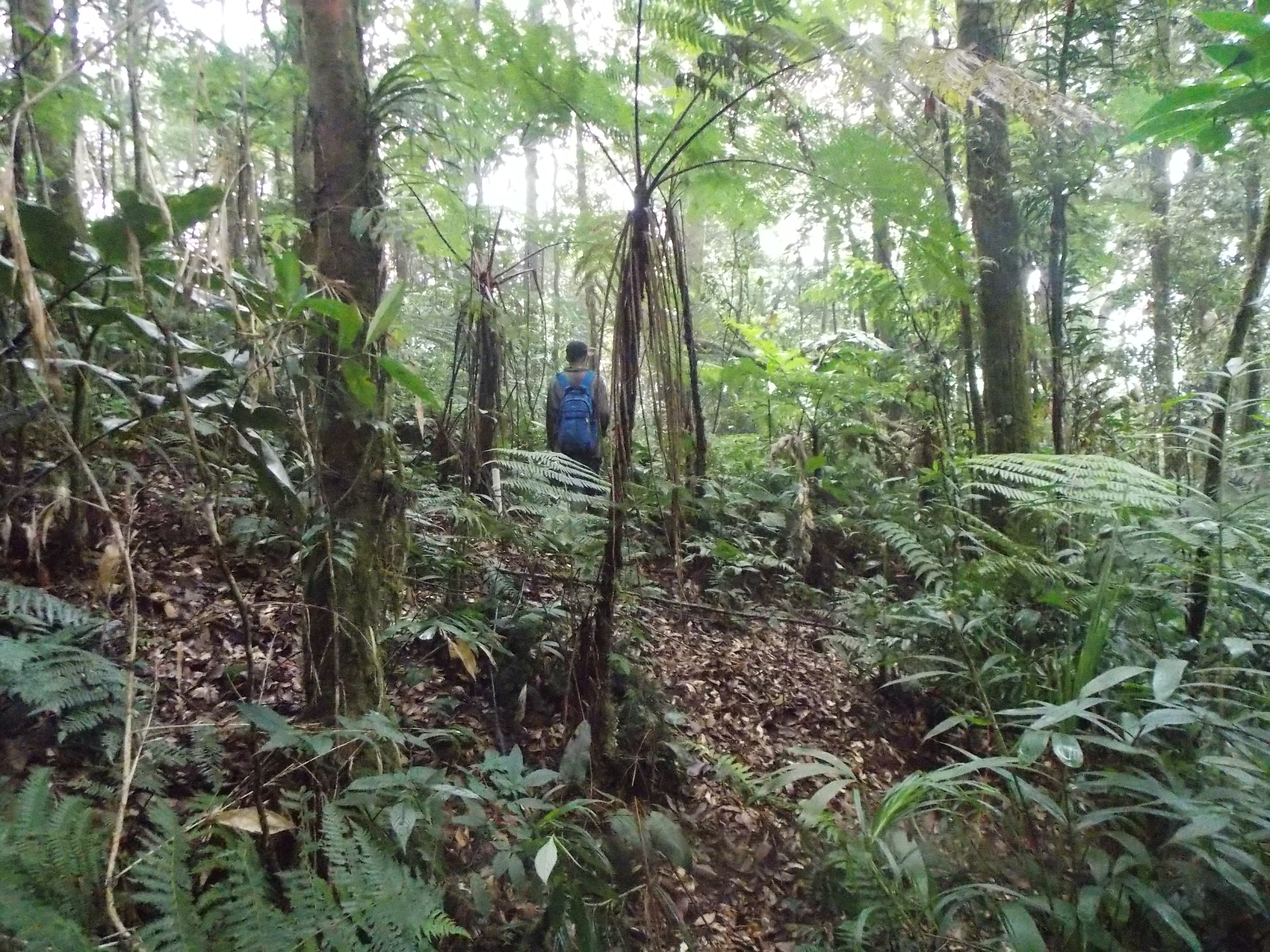Finding a local guide here in the morning is not always easy as most are working as tea pickers and will not be free (except, for example, from lunchtime on a Saturday). Even with a local guide, there is seemingly very little local knowledge about Halimun Utara, and although it is only 4 or 5 kilometres away (and less than 400 metres higher) it seems that the only peak that is well-known at Pasir Banteng is Gunung Botol (1,797m). After entering scrub and then forest (at 1,596m), Gunung Botol takes just one hour to reach and offers no views at all. From Gunung Botol, a couple of faint trails continue in two directions, but neither of them seem to head in the direction of Halimun Utara. Therefore you would either need to ask Park staff (and obtain permission which is very difficult indeed) or try asking at the alternative starting point of Leuwijamang.