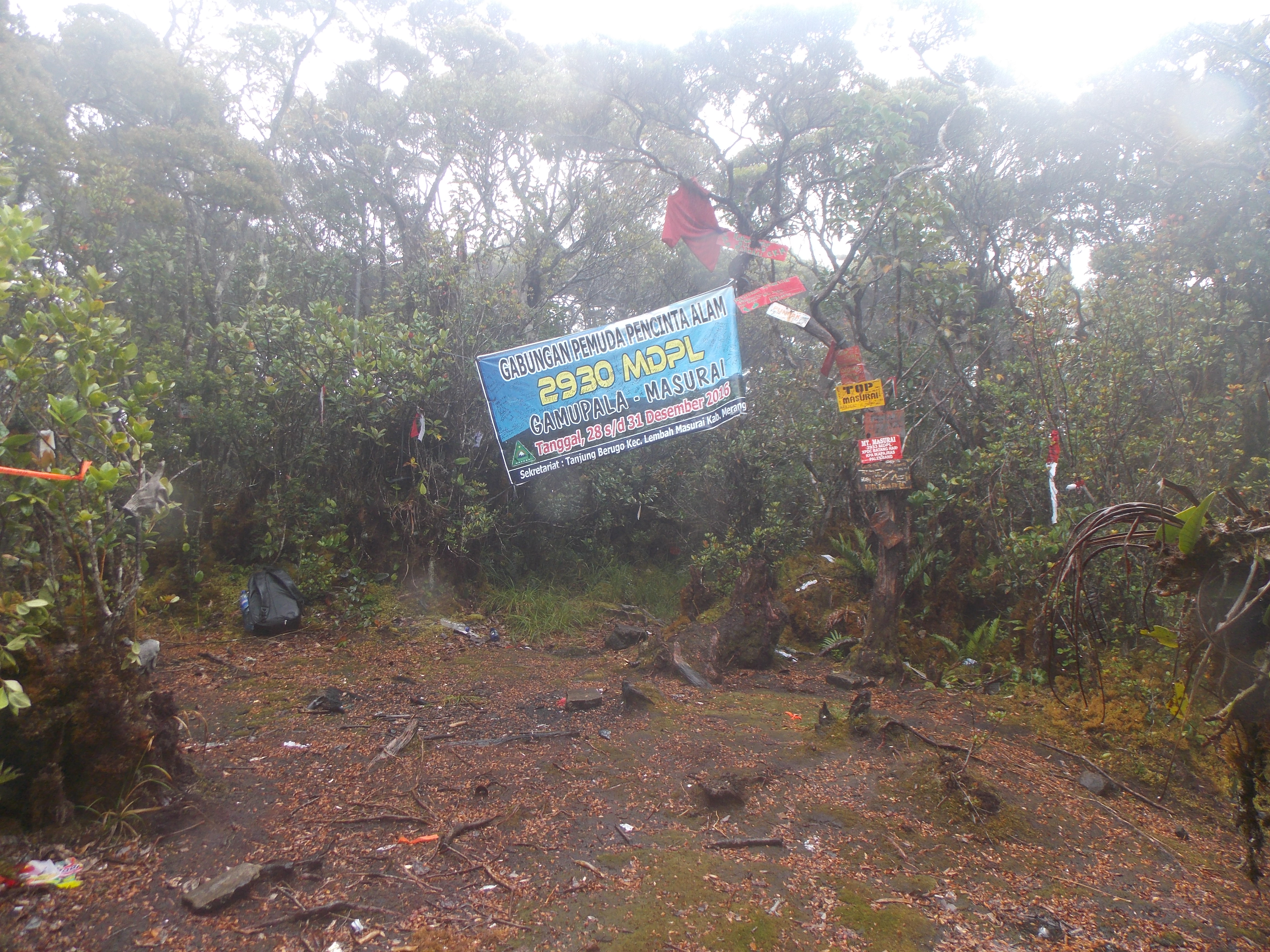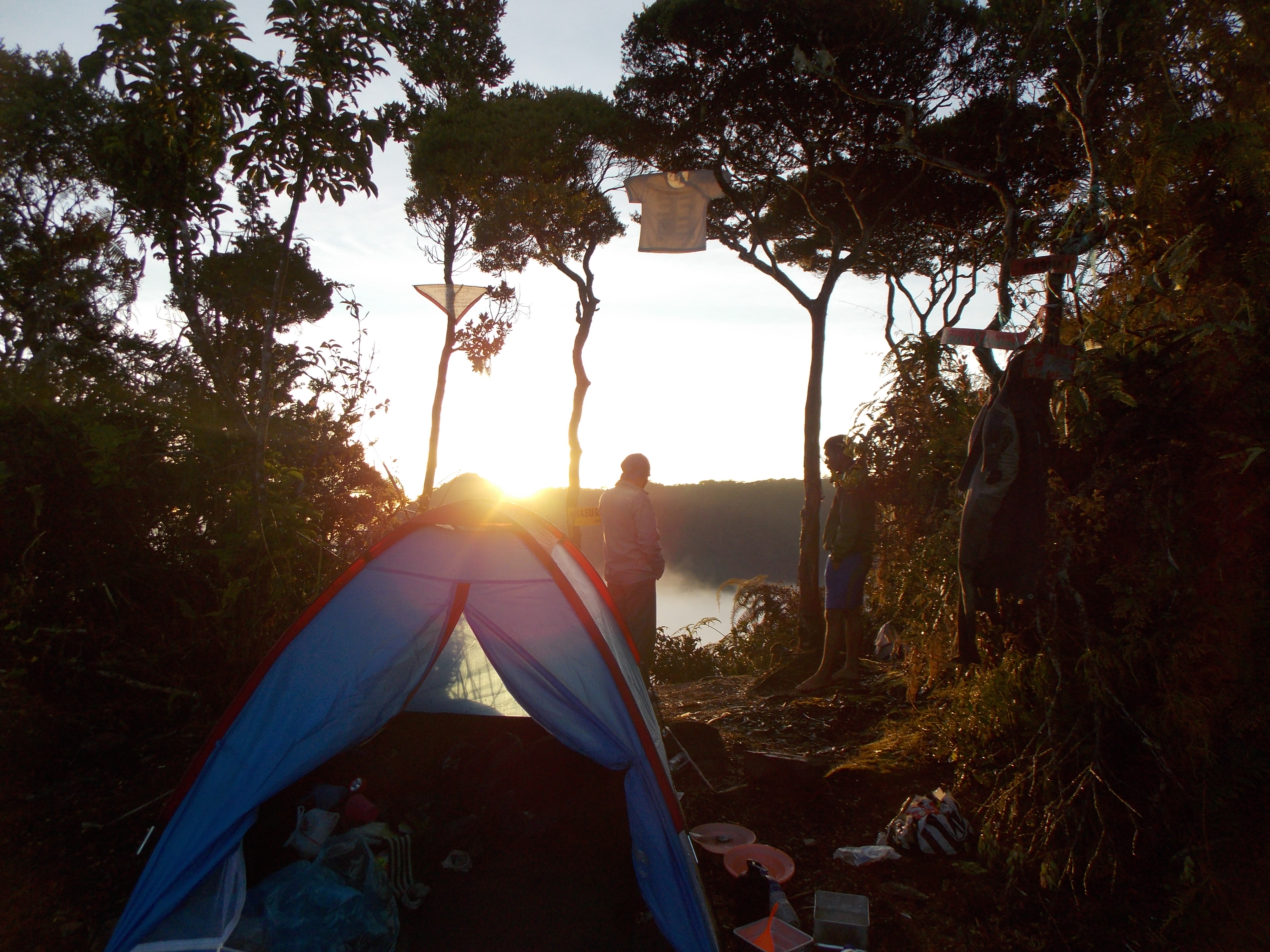 We got to Puncak 1 in 6 hours and decided to camp there as we were running out of daylight and though it was cloudy it appeared to be a good spot for views. The original idea had been to camp down at Danau Kumbang (visible from Puncak 1) but it would have been a further 30 min down a rather steep and muddy trail. All in all, I would recommend Puncak 1 as the best place to camp on Masurai, though there is only flat space for 2 tents or so.