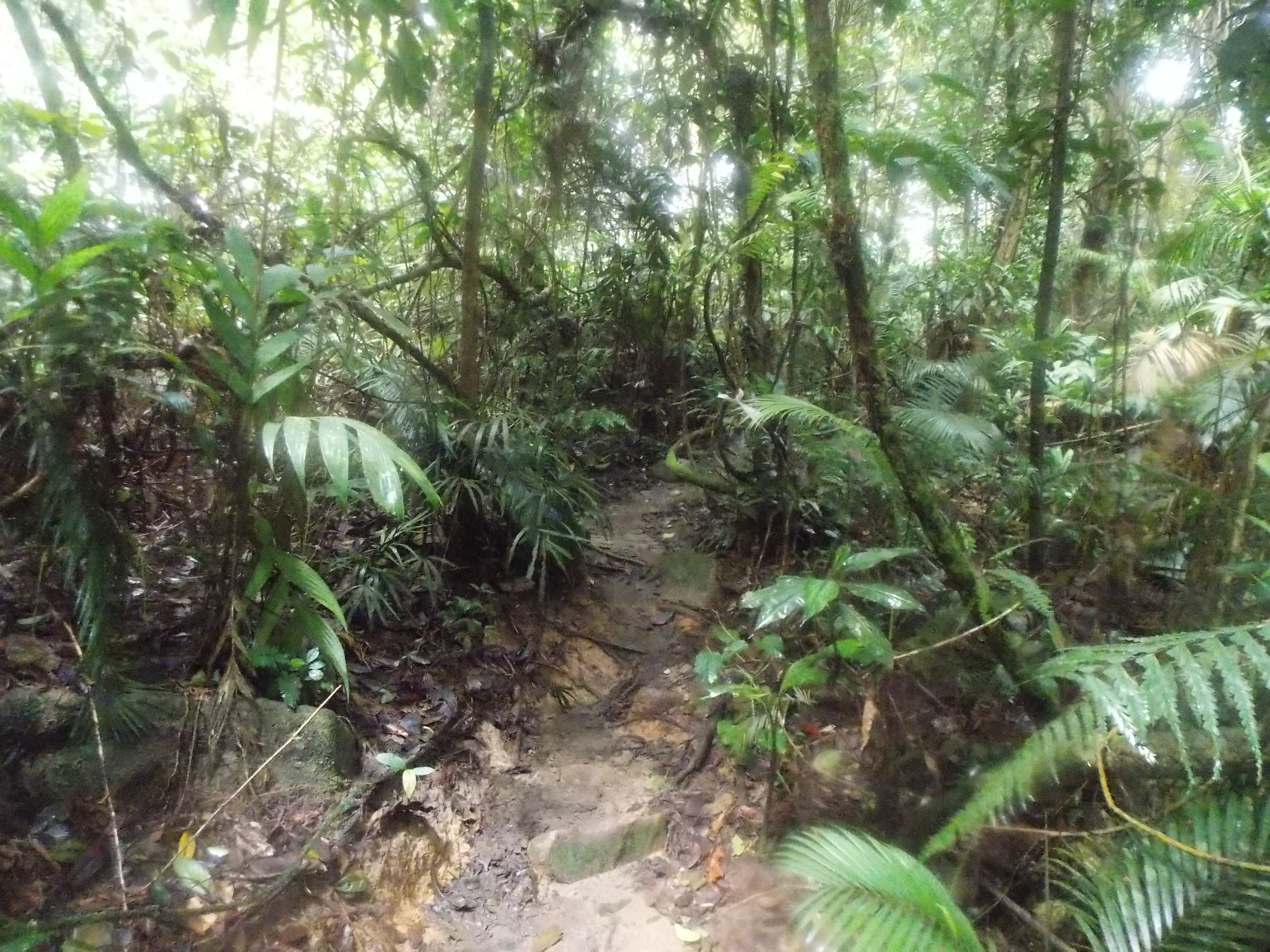 The clouds lifted for a few brief minutes so we could see the reservoir or lake down below. Very pleasant view. On the way back down we heard several hornbills flapping their wings above us. Lovely. Lots of other birdlife too. We were back down in 2hr 30min. Near the start of the trail you can see the hideous towers near the top of Ulu Kali (Genting Highlands) in the distance.