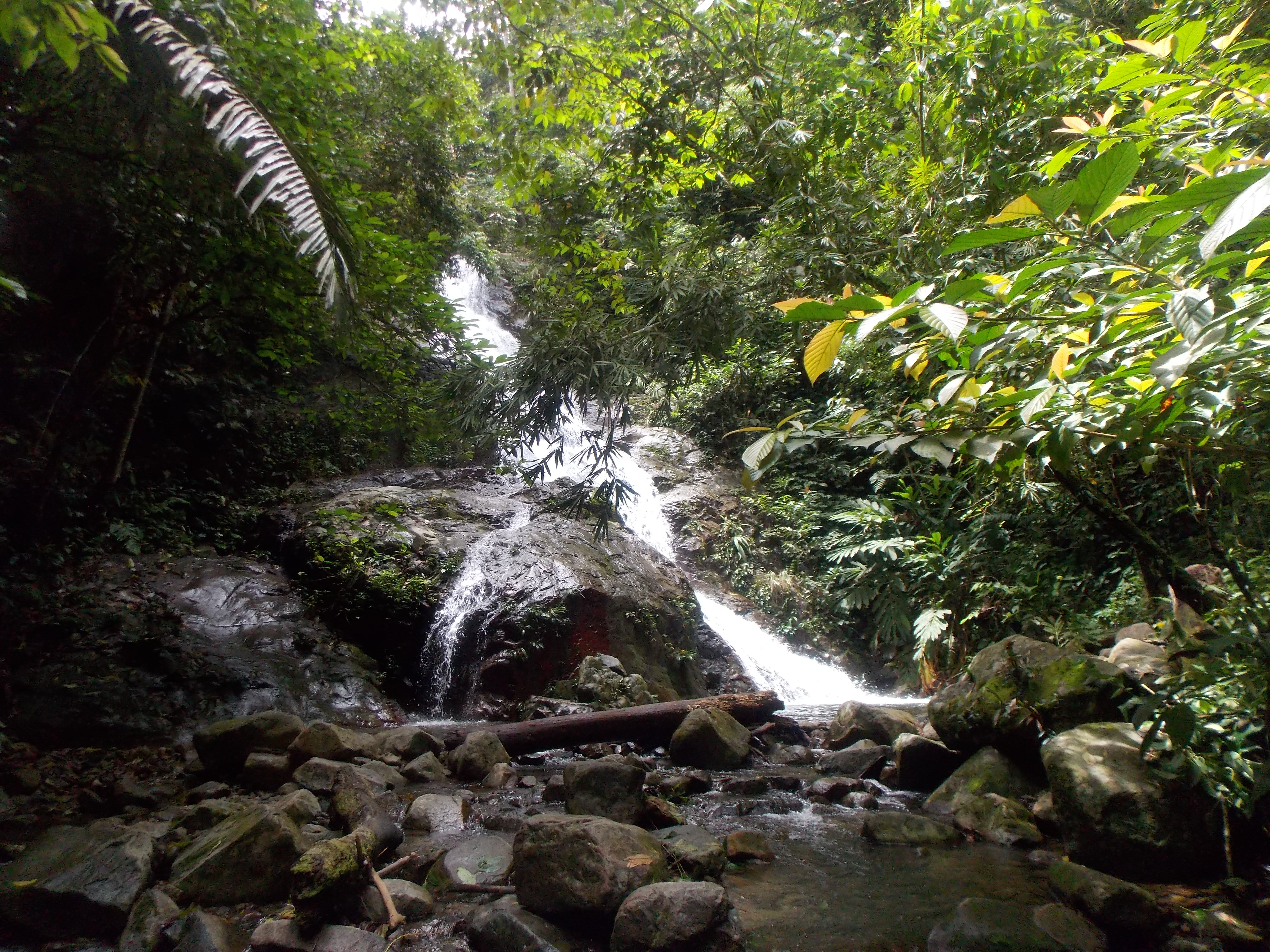 The Janda Baik route is also less bureaucratic than the Langat side, with no official entrance ticket and merely a barrier and forestry sign (545m) on the track leading towards the forest. From this barrier, follow the track until you reach a junction (670m) with a narrow, muddy trail slightly on the right leading into the forest. There are a few bamboo obstacles here before the trail becomes much clearer and easier, following a water pipe for a significant way, past a small stream on the right (790m) before dropping down to a small river (775m) with a pleasant waterfall just two minutes away to the right which is worth a minor detour on the way back down.
