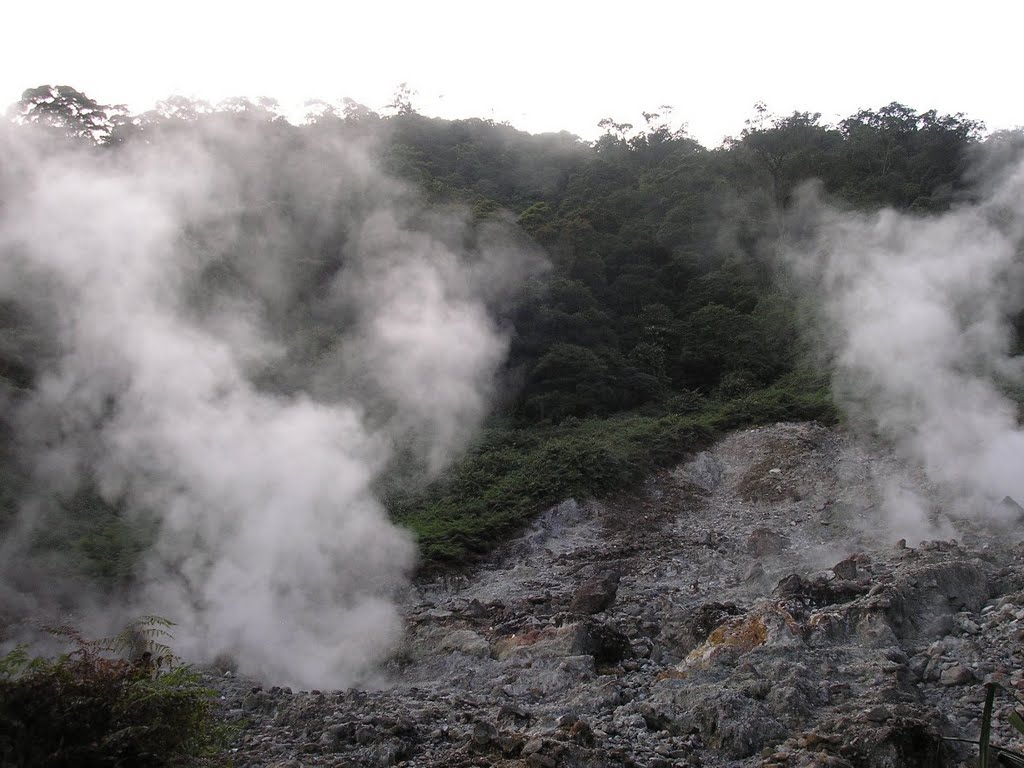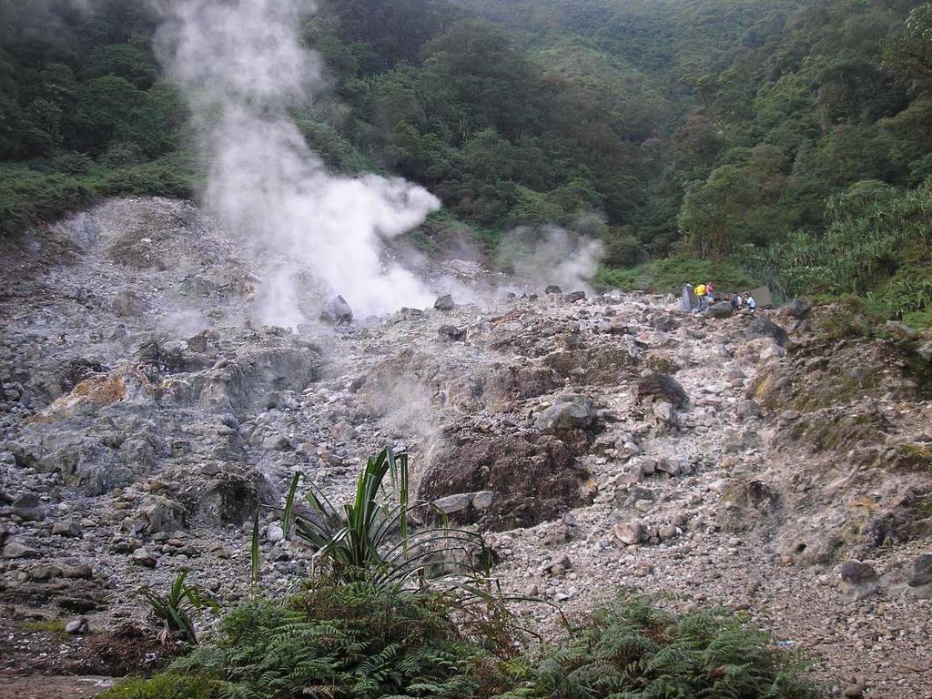 You cannot miss the start of the trail (at 501m), which leads up beyond the village through plantation and there are many signs on the route itself. After less than an hour you should have reached the Curug Putri waterfall (at 750m) where you have to pay Rp4,500 per person at the hut. It is not the most impressive waterfall in Java by any means but certainly an interesting feature on the trail and a place to cool off. The path then leads steeply up to the right and after another 45 minutes you should be close to the impressive rocky crater area (at 1,065m). Beside the white rocks and often dense clouds of sulphur gases there is, once again, a small warung and this area is a very popular place for local students to camp at weekends.