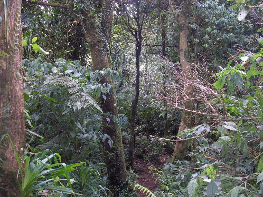 One navigation point we found tricky. The trail from the crater up to the summit exits from the northwest corner of the crater area (lower right as you come up). So the trail hardly passes through the crater area at all. You just arrive at the lower lip, go right for twenty meters and reenter the forest to resume ascending beyond the right edge of the crater rim.