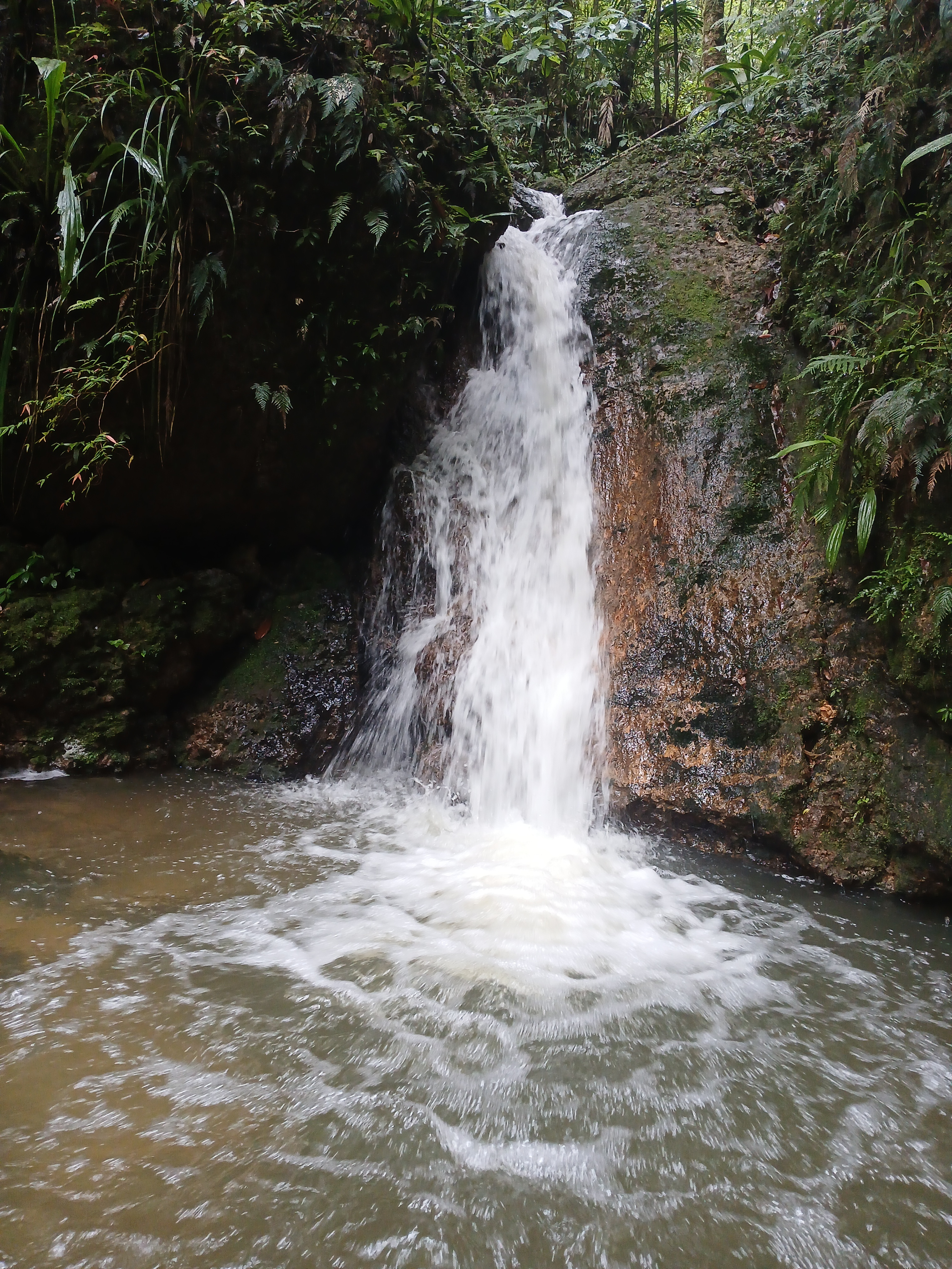 After heavy rain the river may be difficult to cross, but even during the dry season you may very well have to take off your shoes and socks and wade across so be prepared! The trail now ascends steeply and is muddy and covered is thick roots which can make things a bit difficult. However, once above 500 metres elevation the temperature gets a little lower and you start to sweat less! The sound of the river still reverberates long after leaving it and when you reach a sign at 689m the trail is very close to another smaller river. This is the final source of water on the hike.