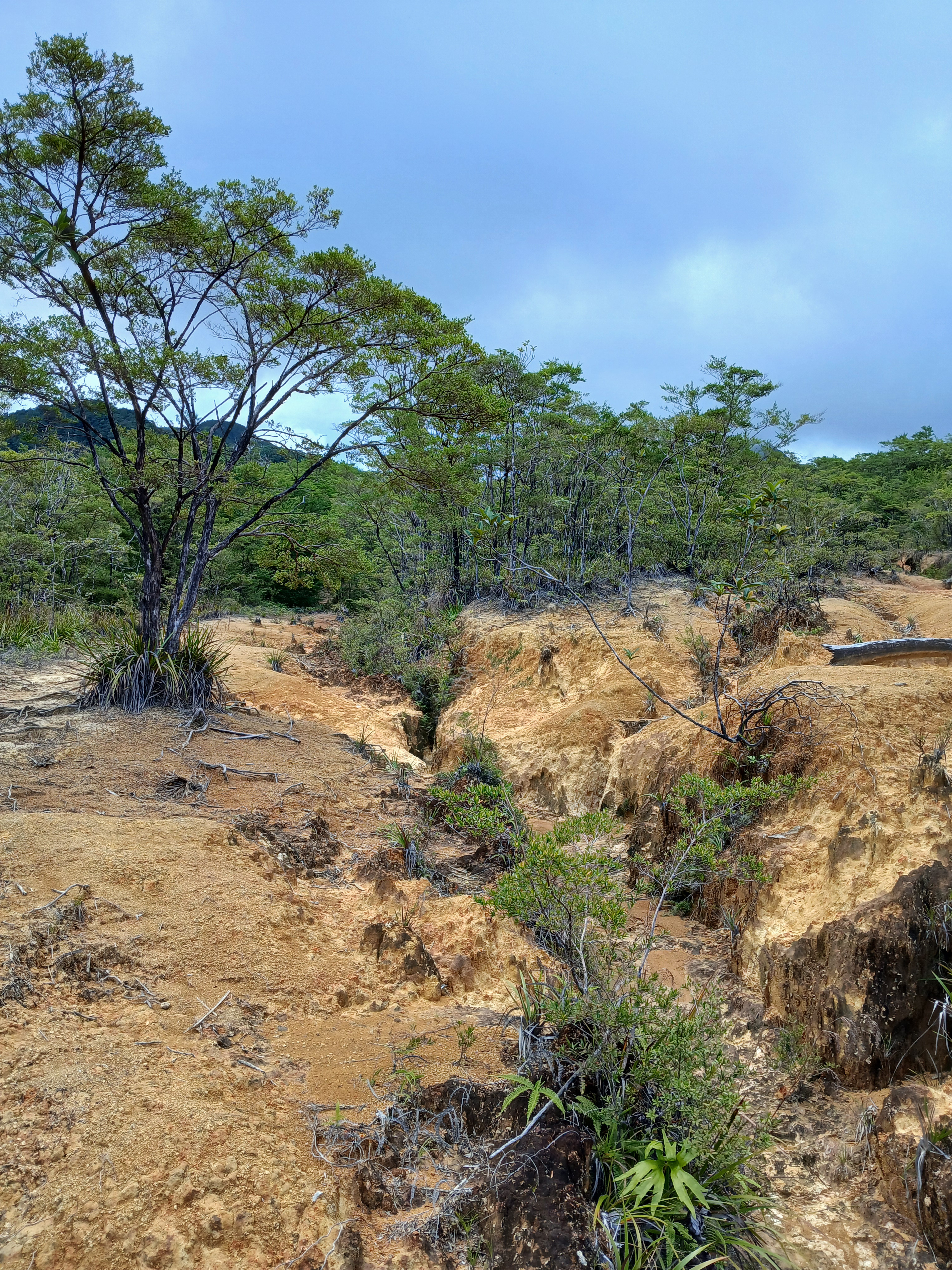 From this point the trail gets muddier but the view really opens out and eventually you will reach the top of Salahutu, the second-highest peak in the range. It is crowned with a broken cement trig pillar and the remains of a few small camp fires. The view eastwards is not limited by trees or other vegetation and as a result you can see the eastern coastline of Ambon island, nearby Haruku island and some of the lesser peaks on the large island of Seram.