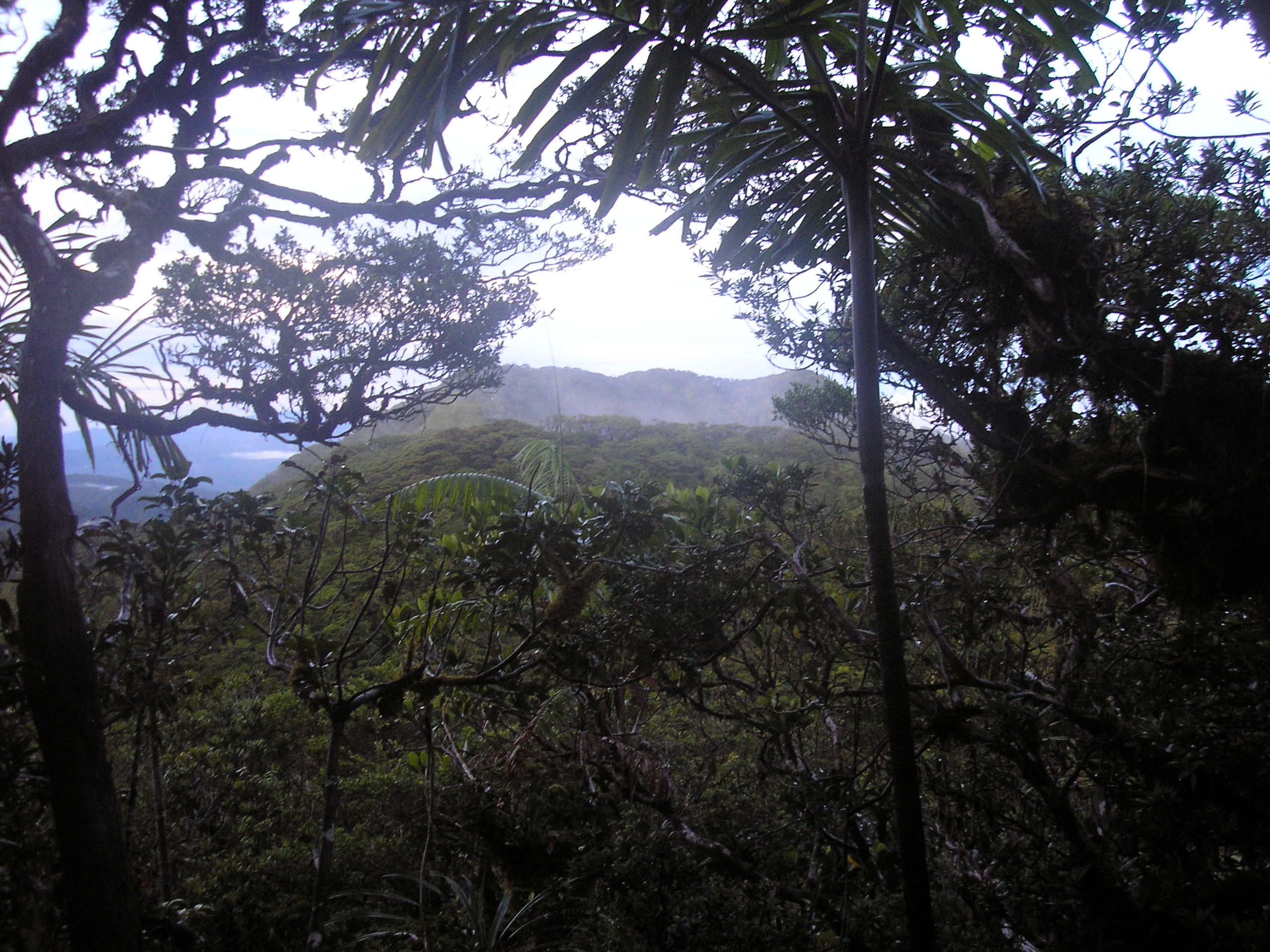 From this point the trail gets muddier but the view really opens out and eventually you will reach the top of Salahutu, the second-highest peak in the range. It is crowned with a broken cement trig pillar and the remains of a few small camp fires. The view eastwards is not limited by trees or other vegetation and as a result you can see the eastern coastline of Ambon island, nearby Haruku island and some of the lesser peaks on the large island of Seram.