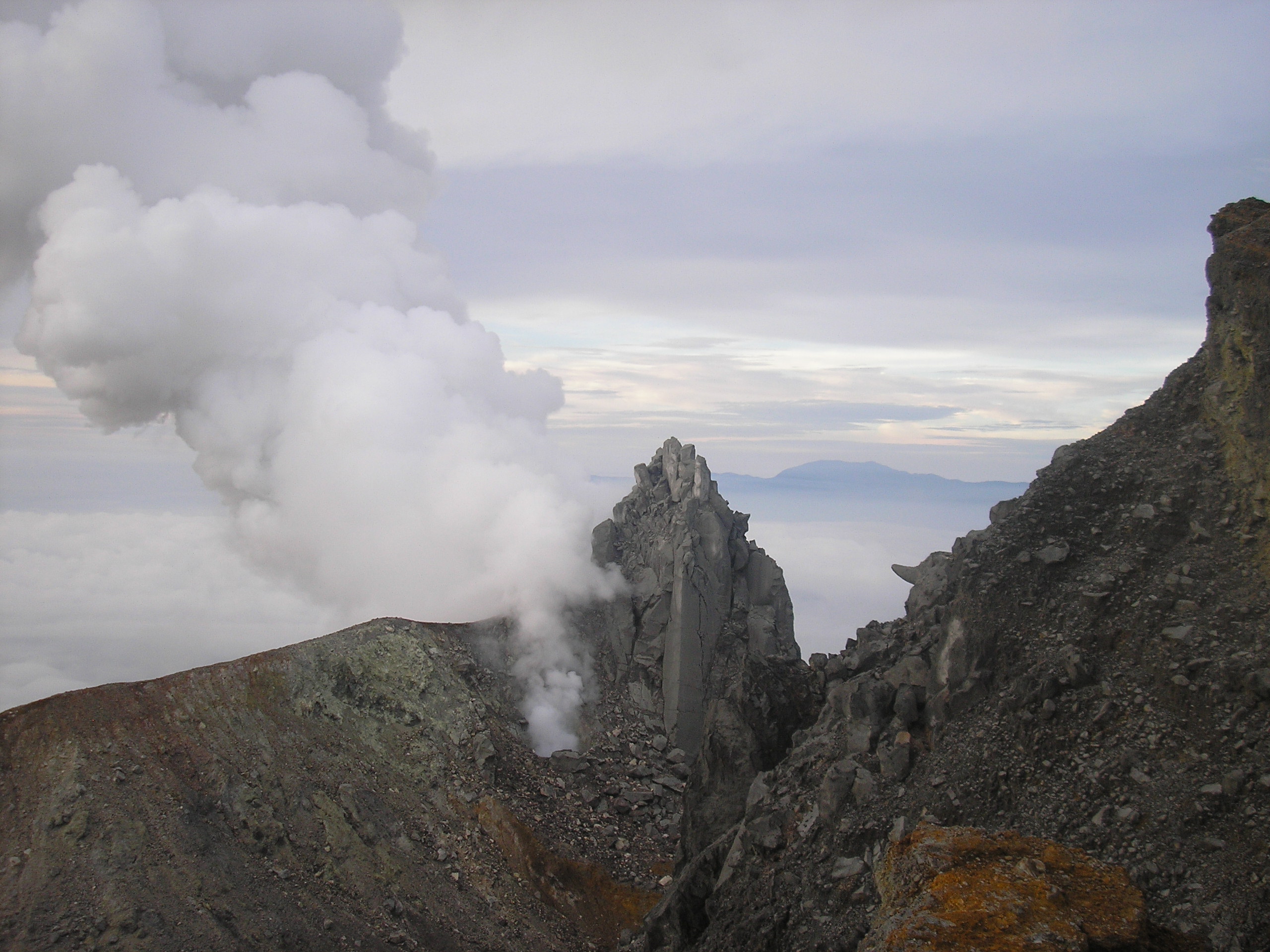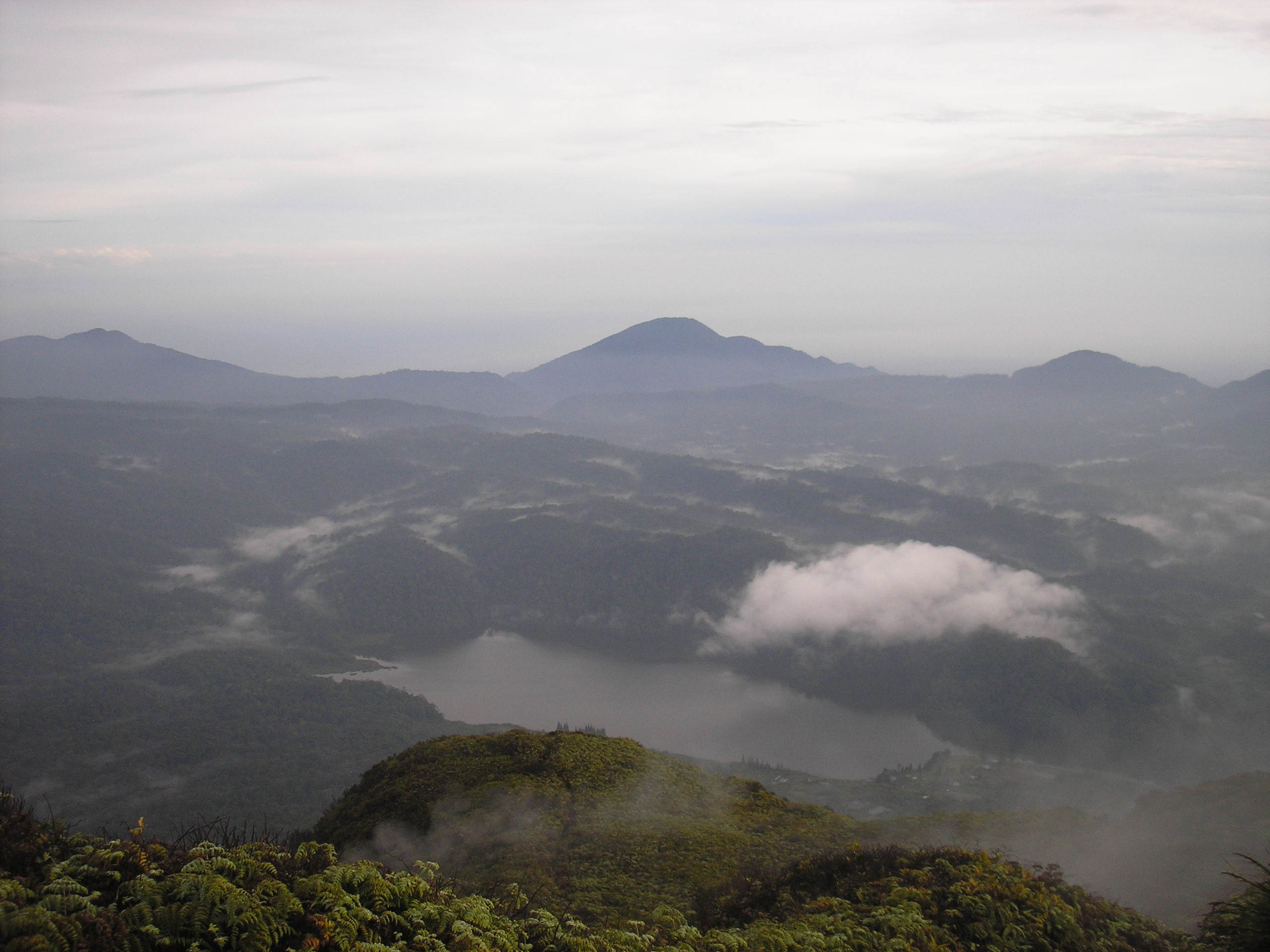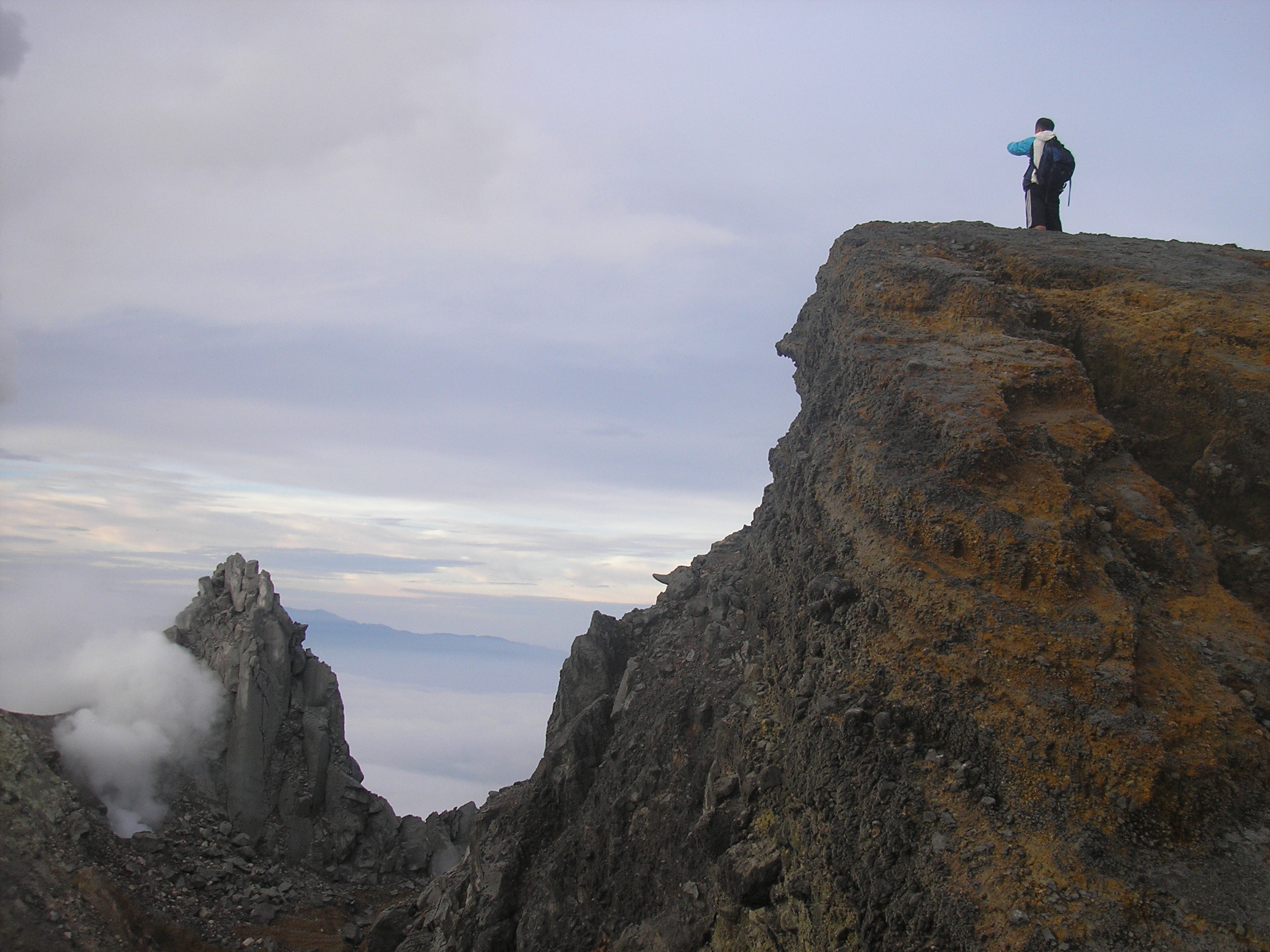 The climb can be divided into three parts. The first hour of the climb is through dense jungle which is loaded with bugs. At night all the moths will swarm towards your face because of the light on your head torch. Better to keep your mouth closed or you will be choking on them. There are tree species name tags (in Latin) and shelter signs but no shelters. The trail meets a stream at around 2,129m. As you get higher the bugs go away and the track gets steeper. This part of the hike is quite muddy and expect the odd leech. Try not to step on the frogs. As the forest recedes, there is a small monument to a lost hiker (at 2,198m) after which the track becomes a rocky gully and for the last hour of the hike you will feel more like a rock climber. But this is the fun part! Then you will arrive directly at the summit where a huge expanse of craters will lie in front of you. In good weather you can see stunning views of Lake Toba, Leuser National Park, Brastagi and Gunung Sibayak. It is worth it to explore the crater area as there are a lot of fumaroles and a new gash in the ground near the impressive jagged rock that was formed after the recent eruption. There is a constant plume of smoke coming from the gash and it would be unwise to get too close to this. The true peak has a small cement monument on it, but it is worth visiting the second highest peak (just 5 or 10 metres lower) for the best views of the new crater and the plume of smoke.