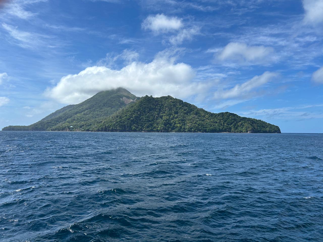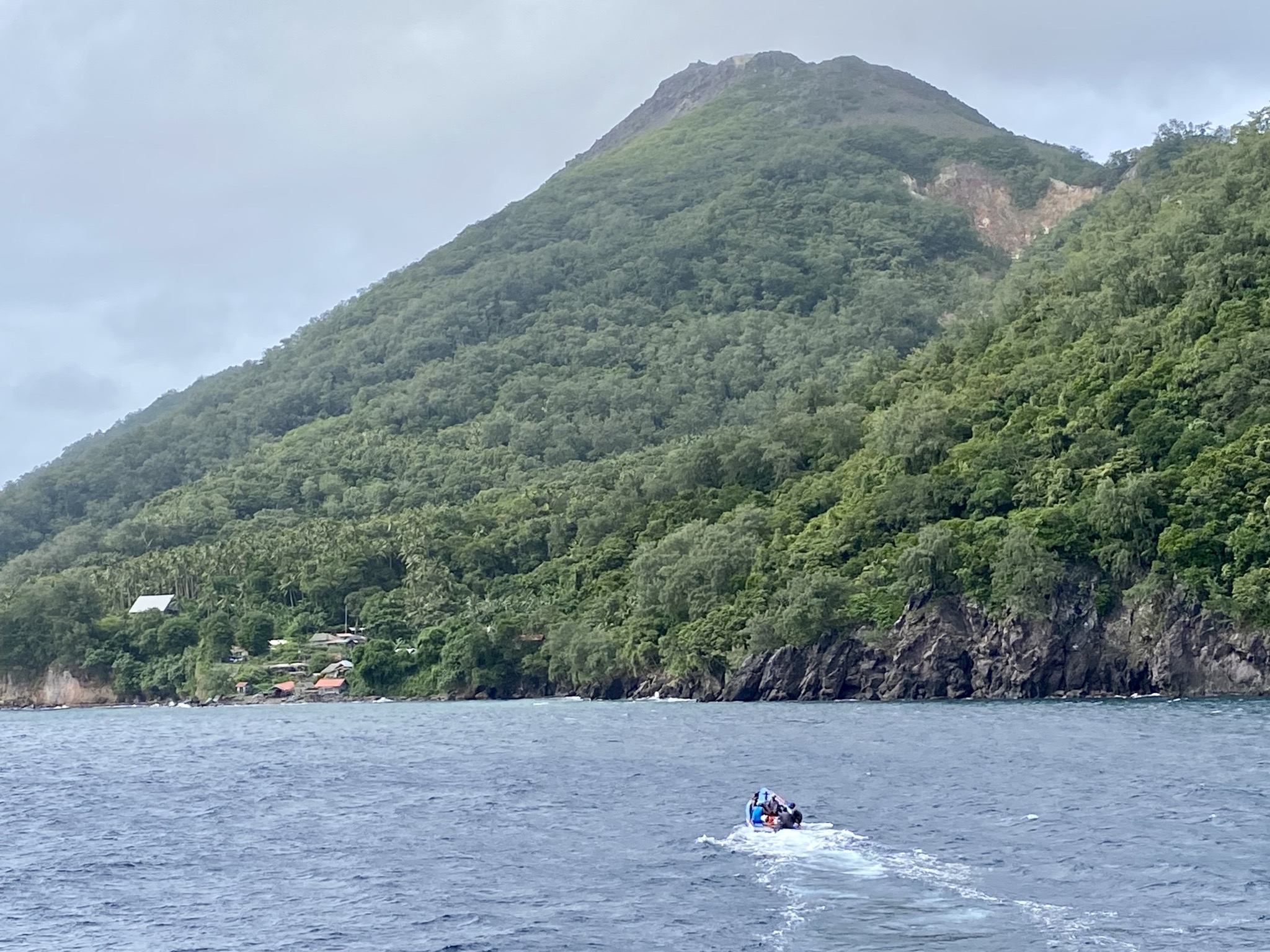 The small 2 x 4 km island of Serua is the emergent summit of a volcano rising 3600 m above the Banda Sea floor. A truncated central cone surrounded by an old somma wall is capped by 641-m-high Gunung Wuarlapna lava dome. The andesitic Serua volcano, also known as Legatala, lies near the center of the Banda arc and is one of the most active of the Banda Sea volcanoes, with many eruptions recorded since the 17th century (Smithsonian).